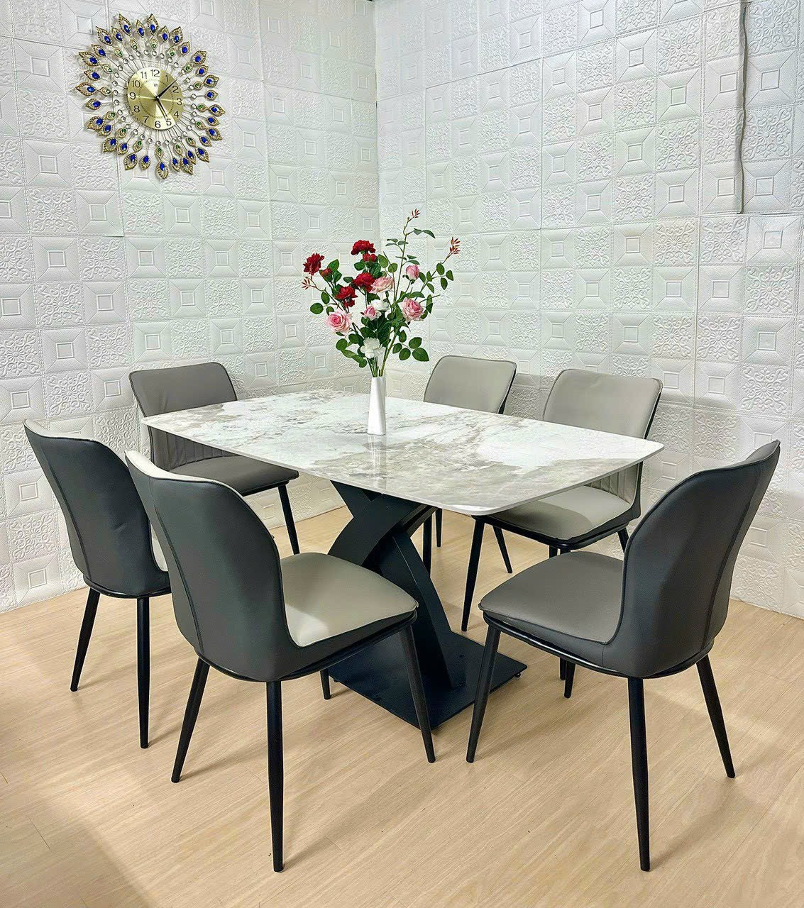 Bàn Ăn Chân X Kép Mặt Đá Ceramic