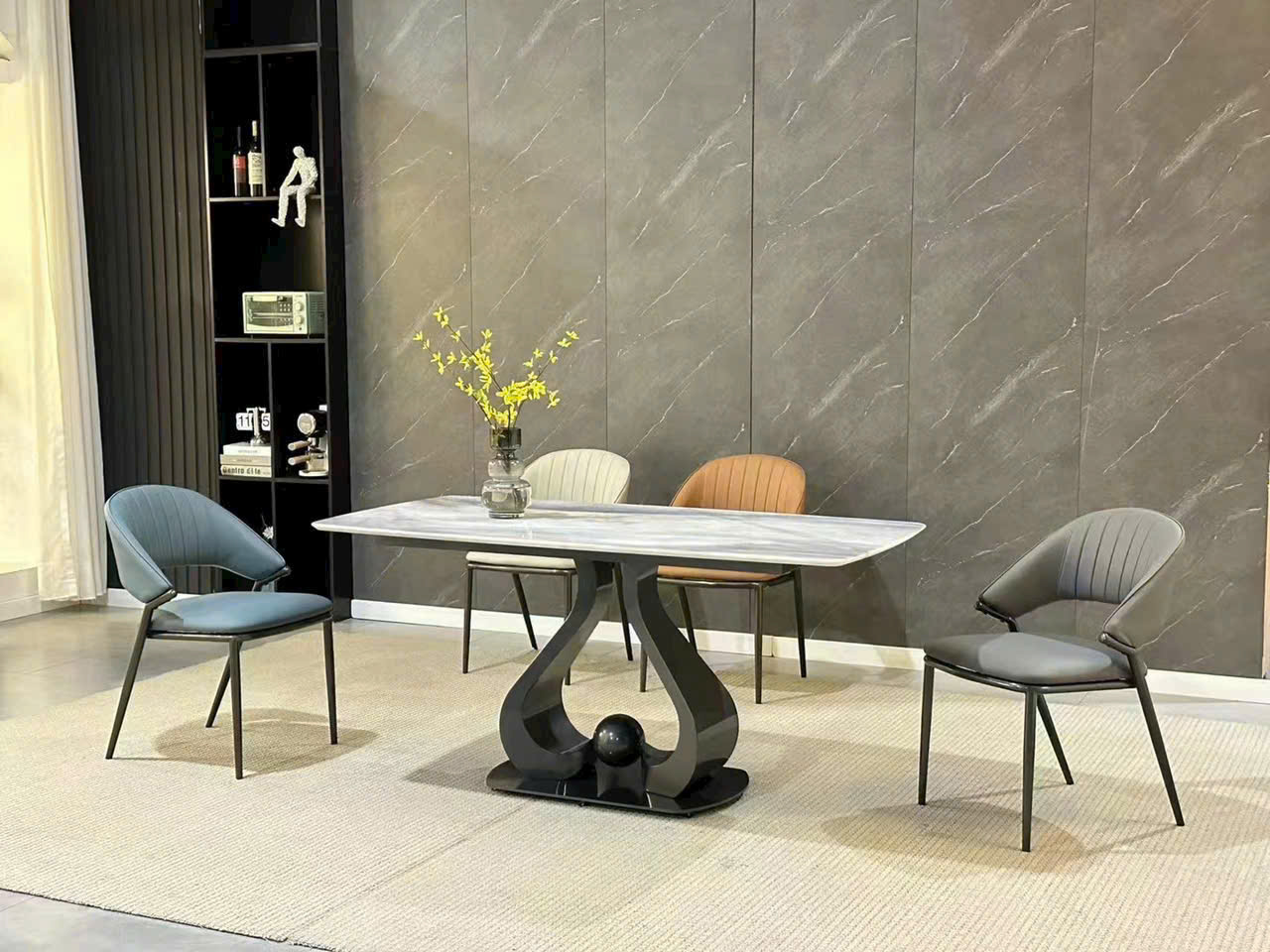 Bàn Ăn Chân Trái Tim Mặt Đá Ceramic