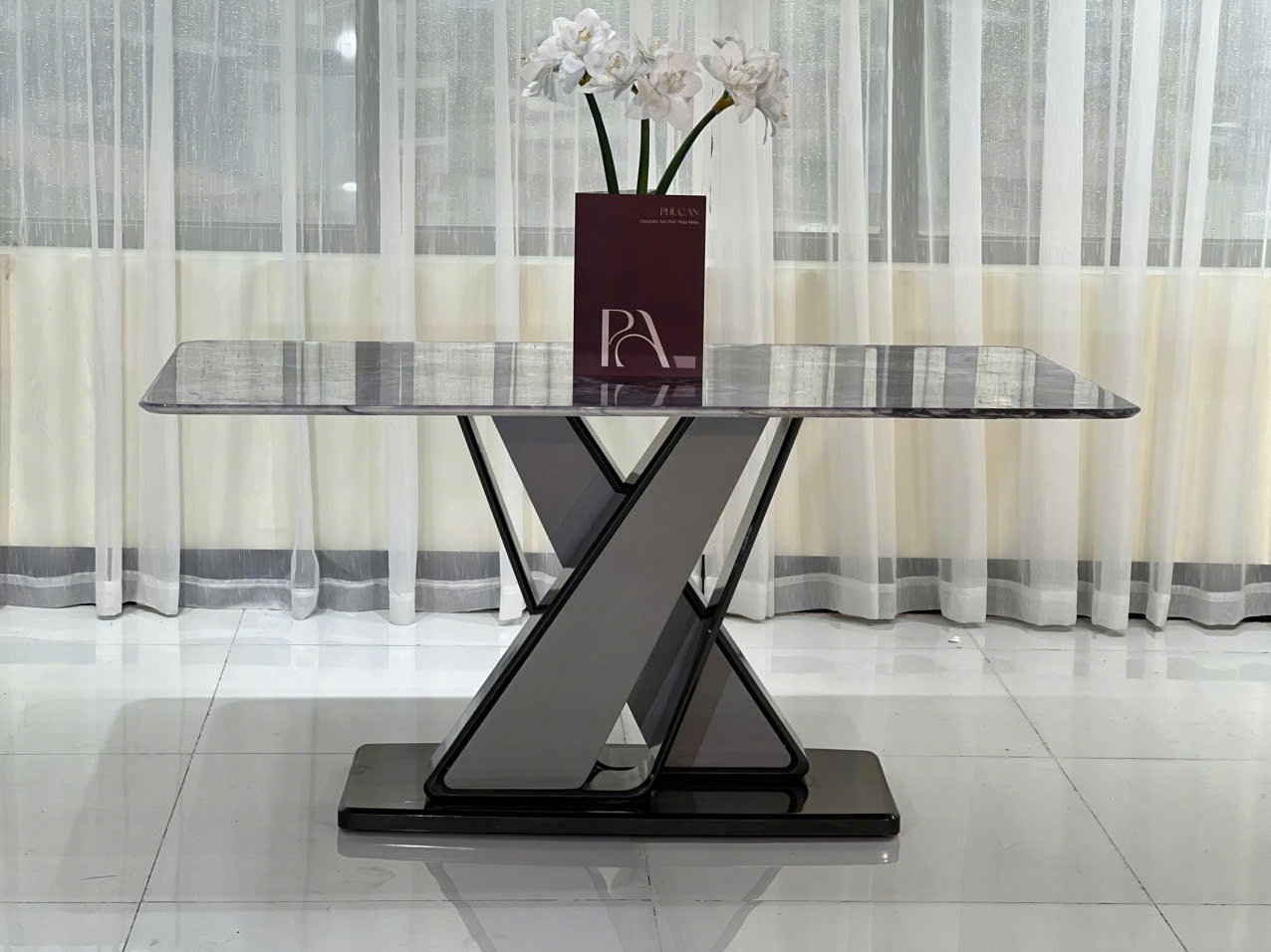 Chất liệu: Mặt đá cao cấp Ceramic, chân gỗ, đế bằng đá