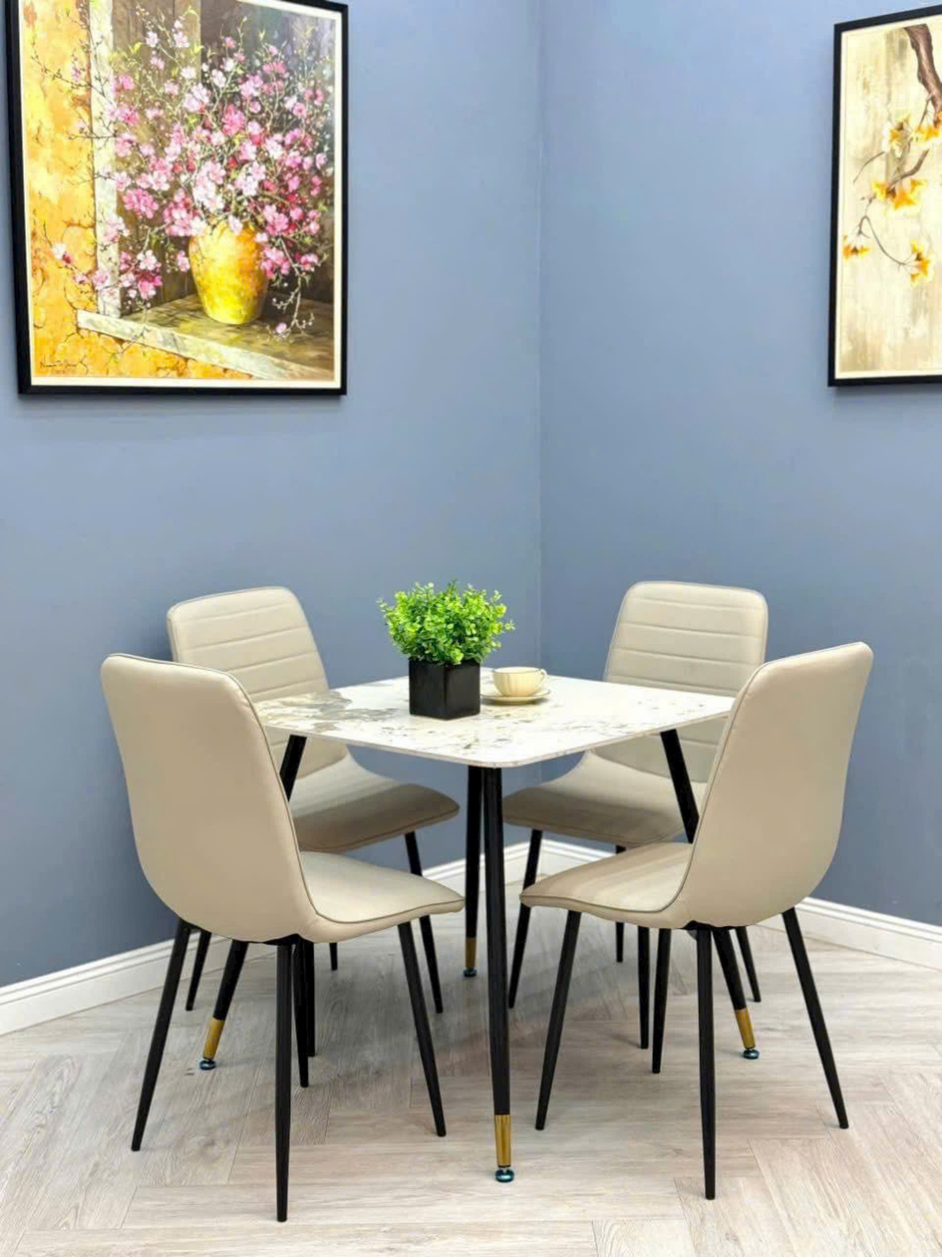 Bàn ăn mặt đá ceramic bóng chân côn ống trụ: