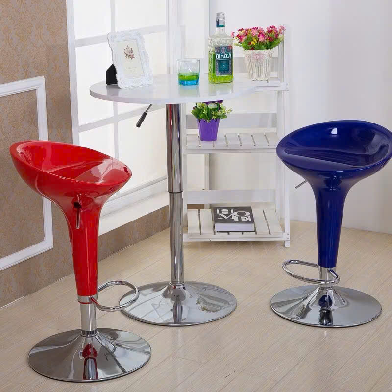 Chân bàn có chức năng nâng lên hạ xuống dựa vào mâm dưới đáy ghế, ống hơi xi mạ, đế mâm tròn mạ sáng bóng