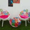 Bộ bàn ghế ban công kiểu trứng ngộ nghĩnh, không kém phần đáng yêu. Sản phẩm làm tôn thêm vẻ đẹp sang trọng và quý phái cho sân vườn , biệt thự và ngôi nhà của bạn. – Chất liệu : Khung sắt sơn tĩnh điện, đan dây nhựa giả mây tròn, tết kiểu đan rối .