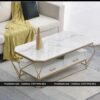 Bàn trà 2 tầng mặt đá ceramic vân mây sáng bóng, khung sắt sơn tĩnh điện kèm 2 hộc gỗ tiện dụng