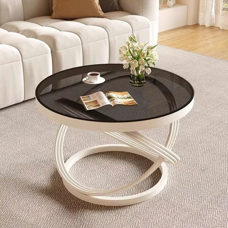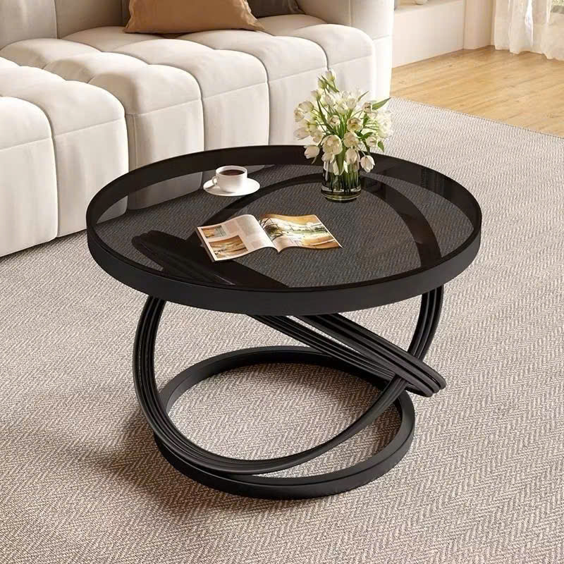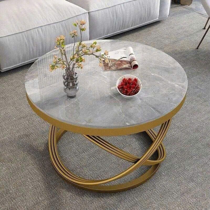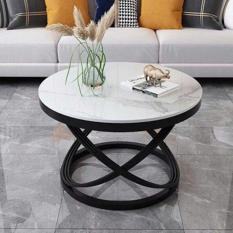 Bàn Sofa Tròn Mặt Đá/ Kính Chân Sơn Tĩnh Điện – Hiện Đại & Sang Trọng