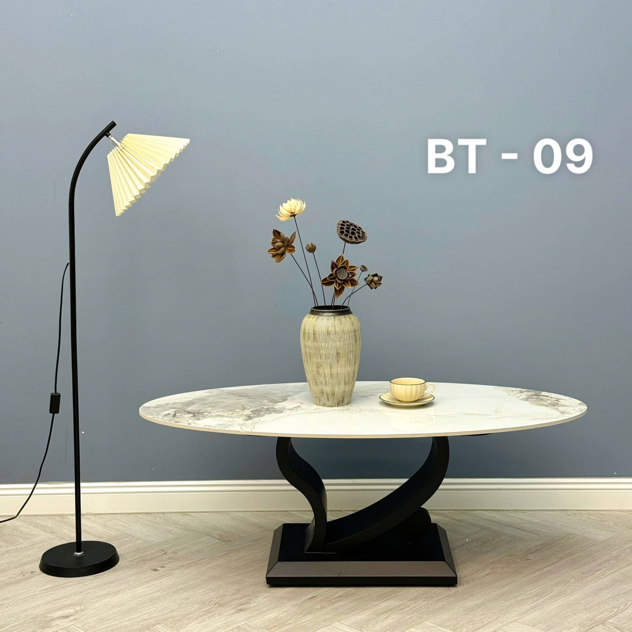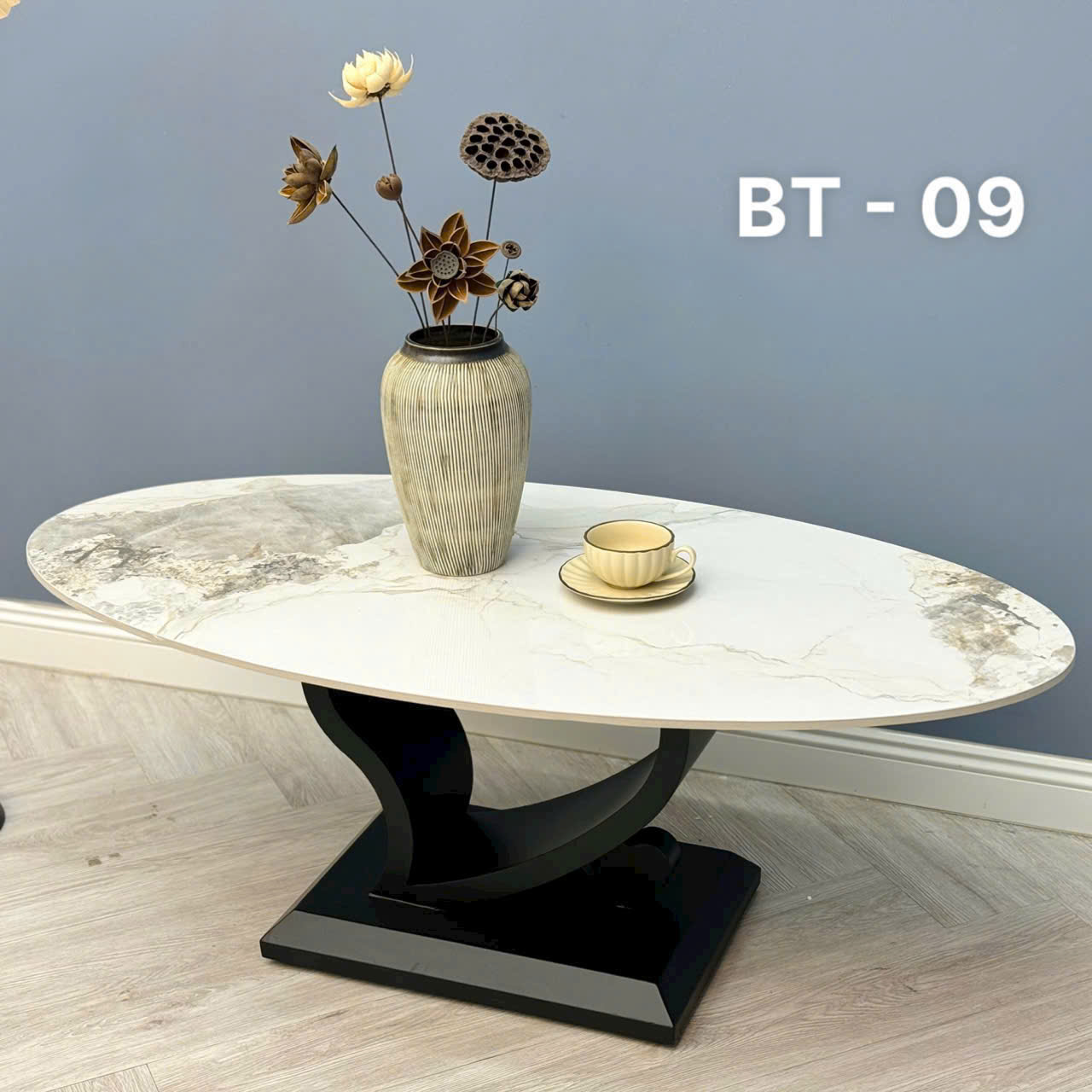Bàn trà Oval mặt đá cao cấp VN-AKBT09 cho không gian trang nhã, sang trọng.