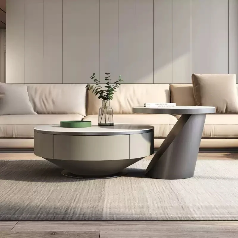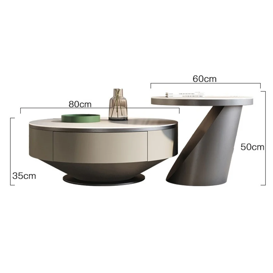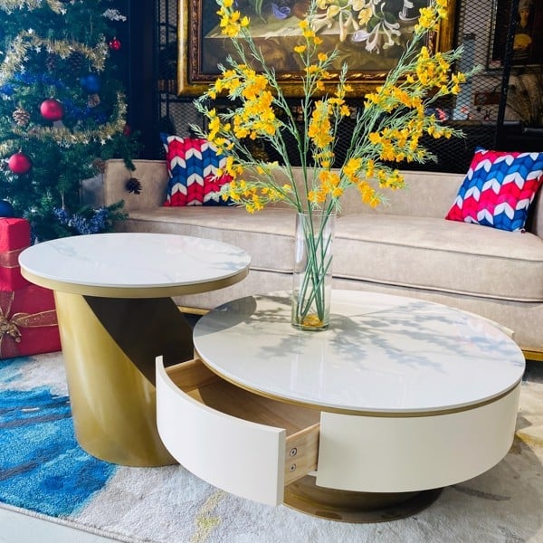 Hai bàn có thể tách rời hoặc lồng ghép tùy ý. Điều này giúp tiết kiệm diện tích và tạo nên điểm nhấn chuyển động thị giác. Thiết kế này cực kỳ phù hợp với những ai yêu thích sự linh hoạt và sáng tạo trong không gian sống.