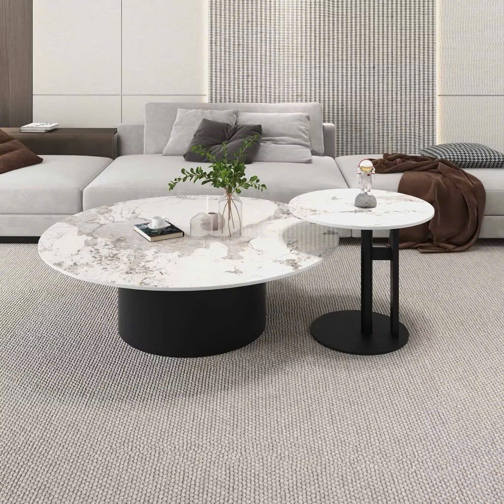 - Bàn trà khung sắt mặt đá cao cấp – bàn sofa cặp mặt tròn PV-BT480AC