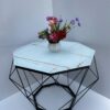 Bàn trà kim cương mặt kính cường lực vân 3D, khung sắt sơn tĩnh điện.