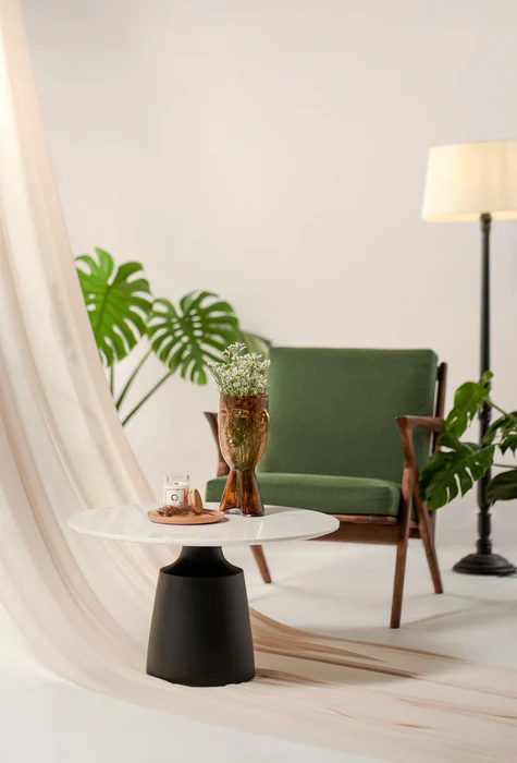 Chất liệu: Chân sắt sơn tĩnh điện, Mặt bàn đá Ceramic