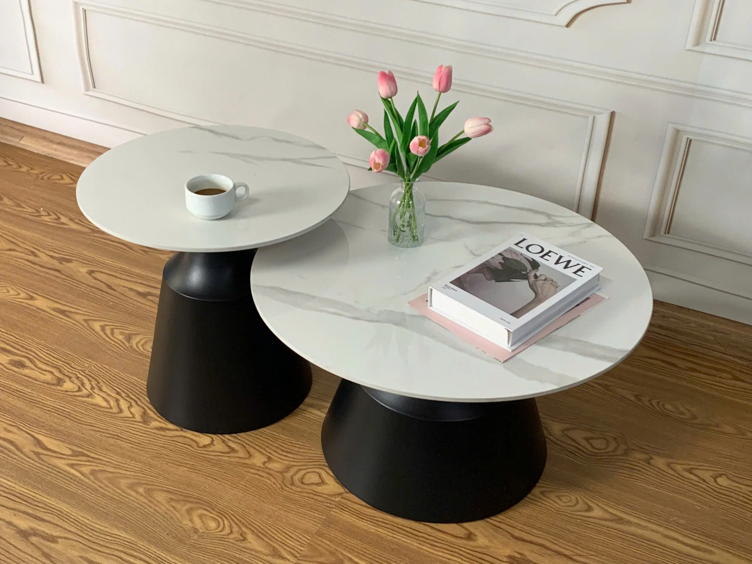 Kích thước: Bàn to D70*H43cm/ Bàn nhỏ: D50*H48cm