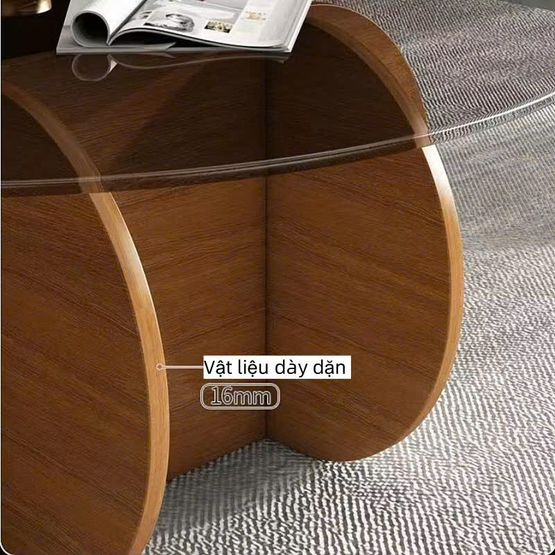 Bàn trà với mặt kính cường lực chống vỡ dày 5mm kết hợp chân bàn làm từ gỗ công nghiệp cao cấp. Sản phẩm mang phong cách Ý hiện đại với đường nét tối giản nhưng vô cùng tinh tế.