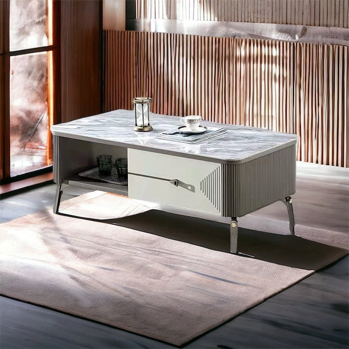 Một trong những yếu tố quan trọng khi chọn bàn trà chính là khả năng bảo trì. Mặt đá ceramic phủ kính giúp việc vệ sinh trở nên đơn giản hơn bao giờ hết. Chỉ cần một chiếc khăn mềm là bạn có thể làm sạch bề mặt.
