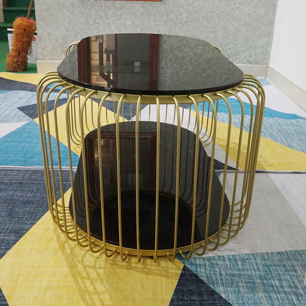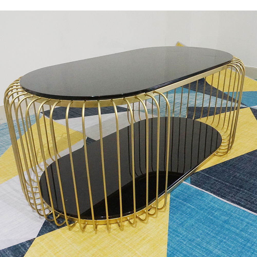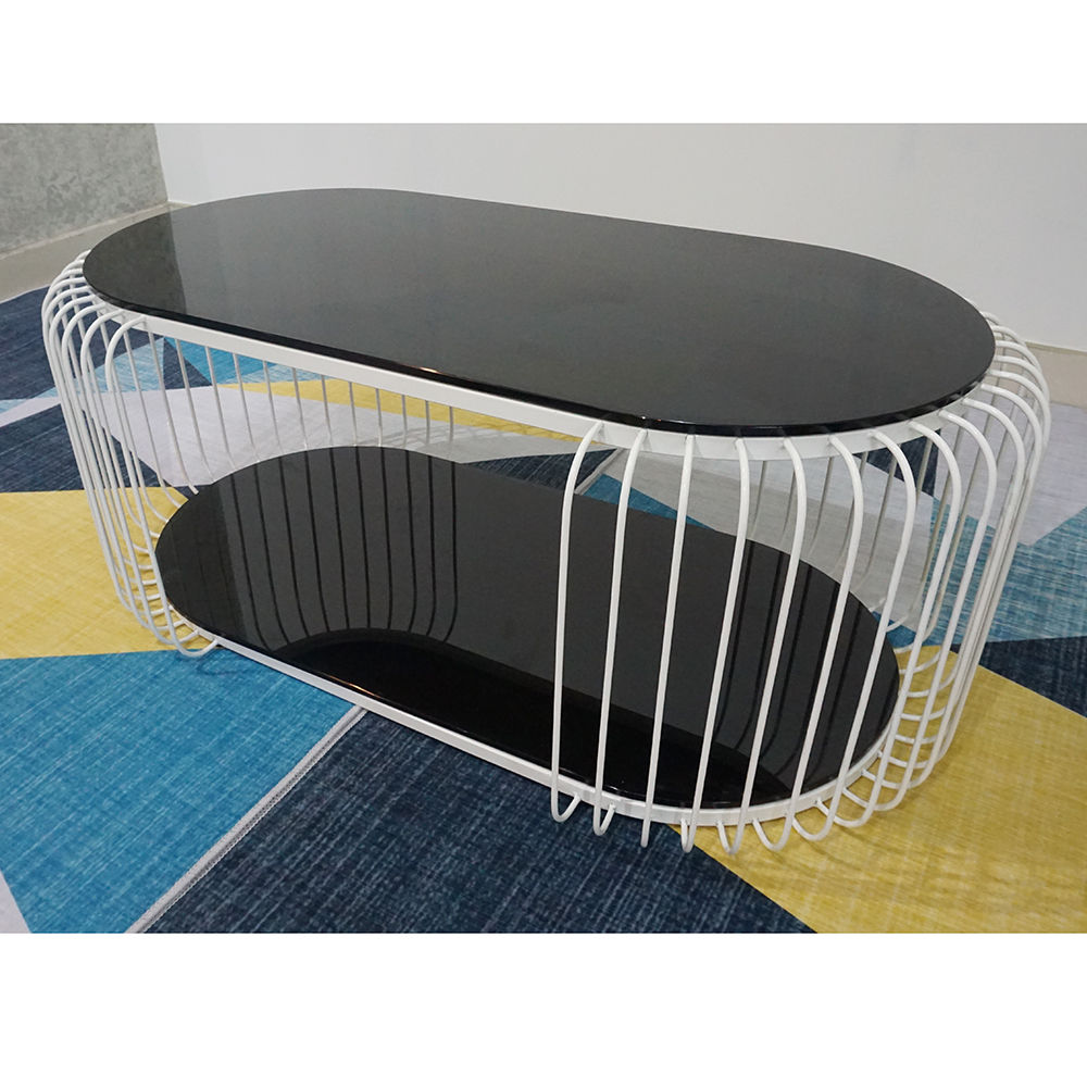 Bàn trà mặt kính khung sơn tĩnh điện 3 màu: đen/trắng/vàng đồng.
