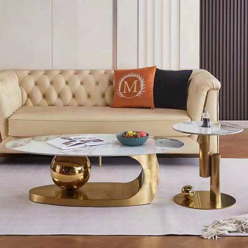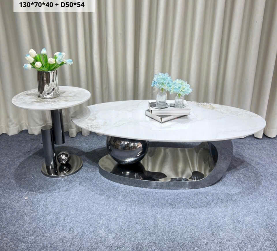 BÀN TRÀ OVAL MẶT ĐÁ NHẬP KHẨU VNBT90