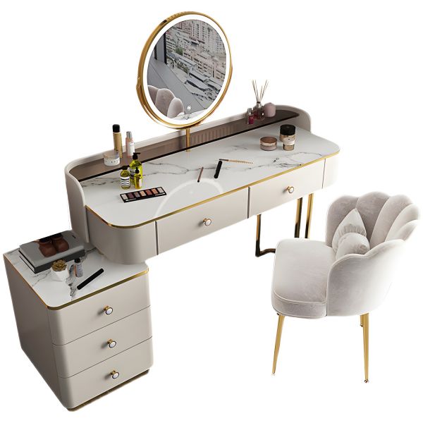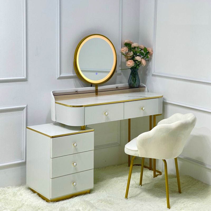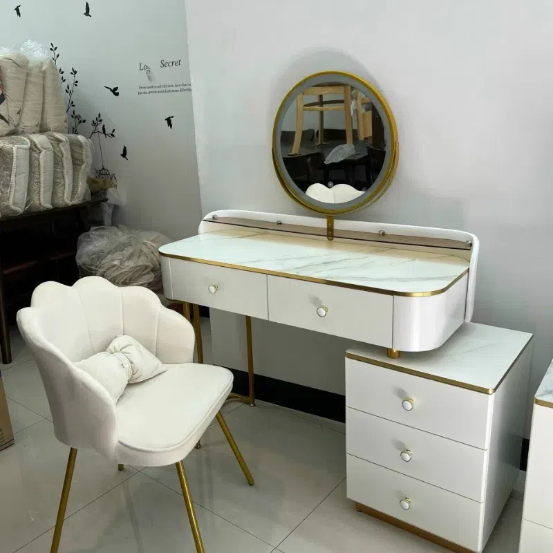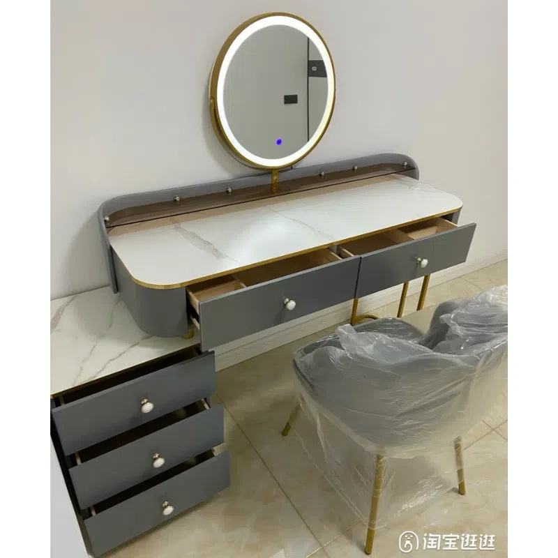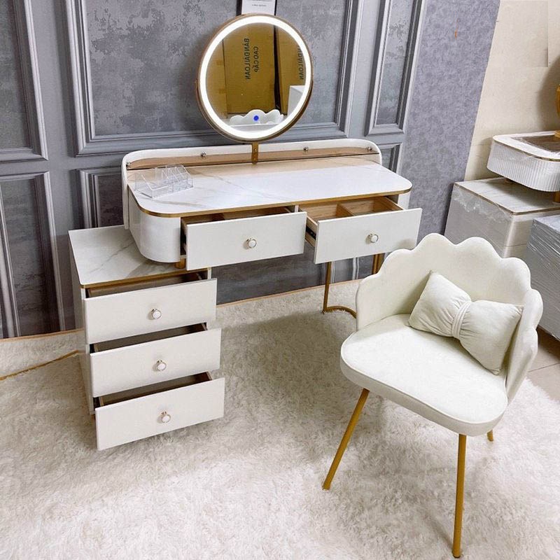 ✔️Bàn make up có mặt gỗ giả đá chịu trọng tải lớn và bền rất sang trọng khi bật đèn LED, dễ vệ sinh lau chùi