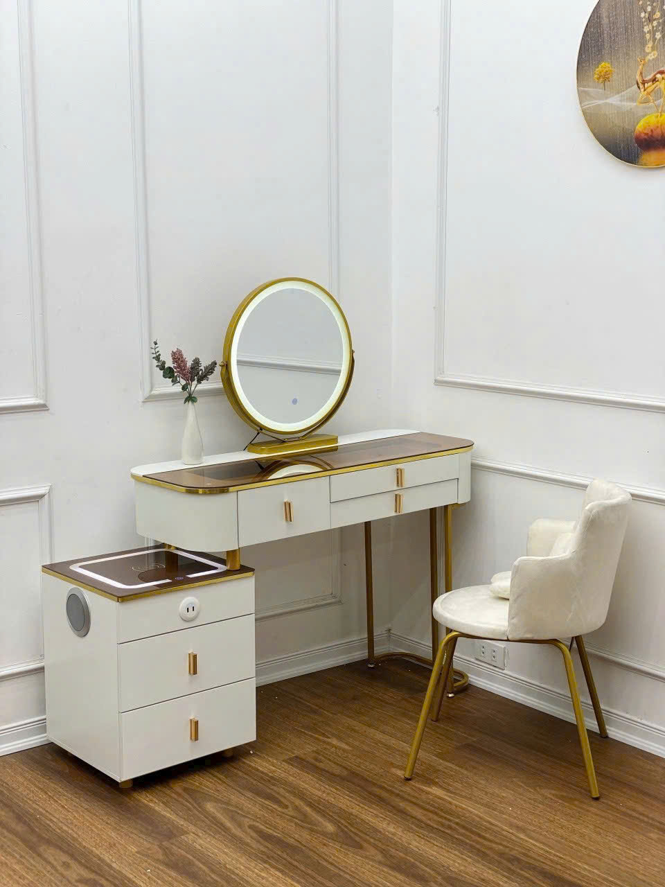 – Bàn trang điểm cá nhân, bàn trang điểm trang trí phòng ngủ, lưu trữ mỹ phẩm, nữ trang, đồ dùng trang điểm cho chị em phụ nụ. tiện nghi sang trọng diện tích sử dụng lớn với thiết kế thông minh