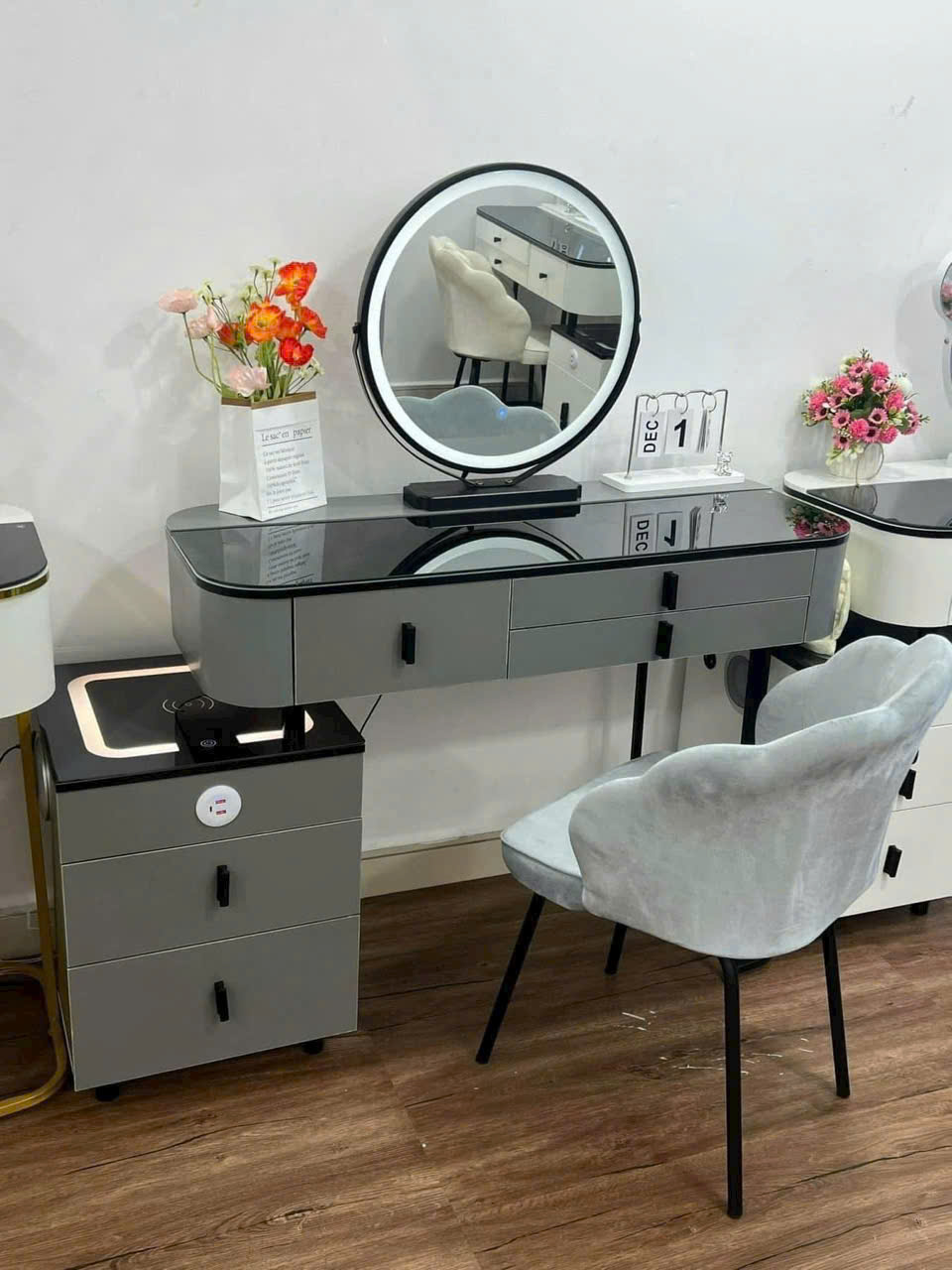 – Bàn trang điểm cá nhân, bàn trang điểm trang trí phòng ngủ, lưu trữ mỹ phẩm, nữ trang, đồ dùng trang điểm cho chị em phụ nụ. tiện nghi sang trọng diện tích sử dụng lớn với thiết kế thông minh