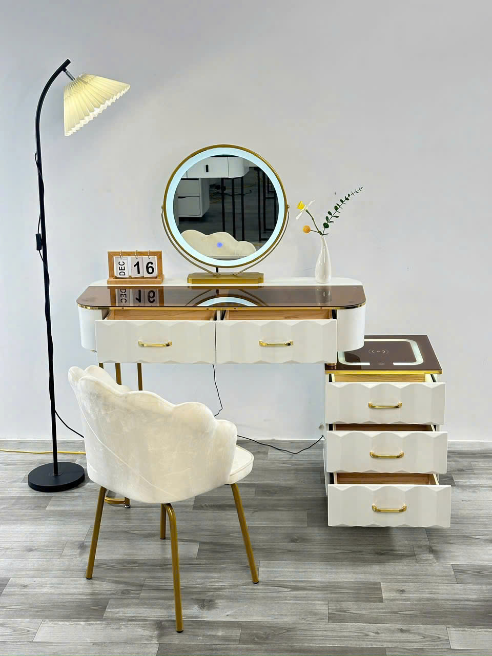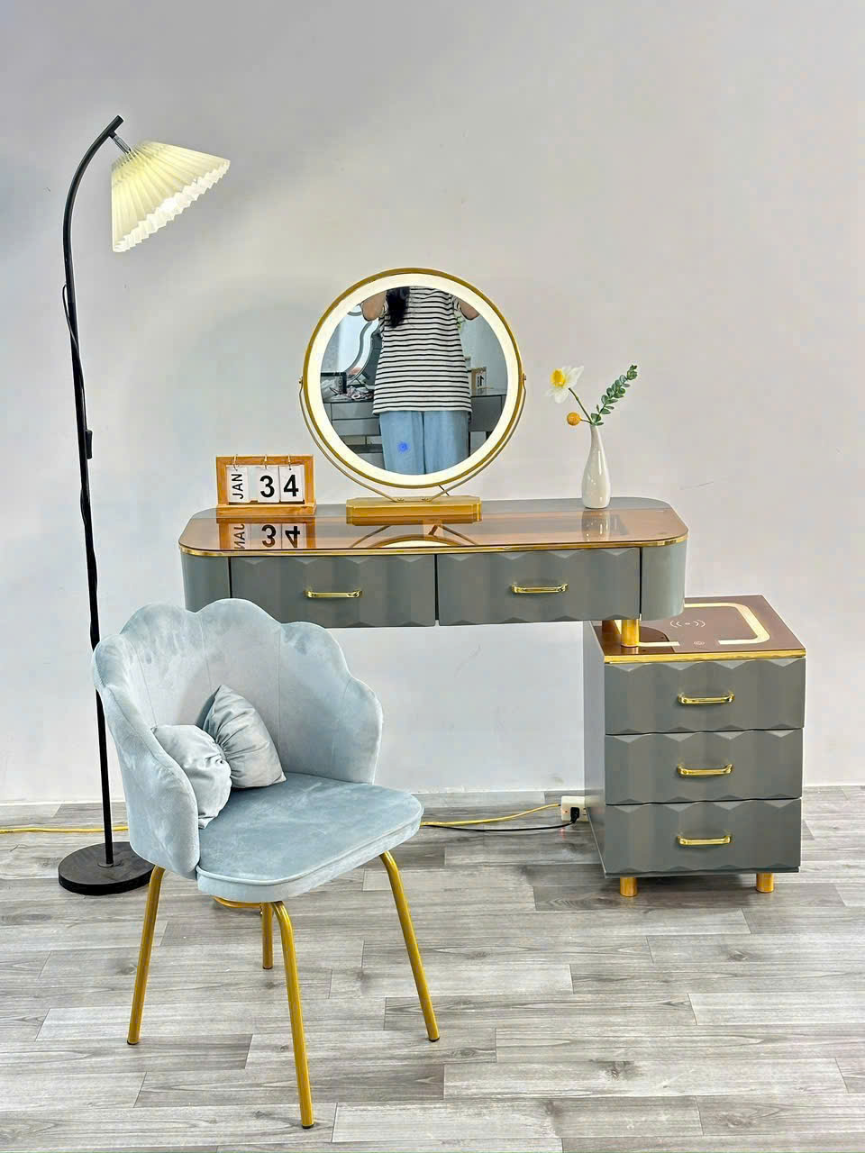 Combo bộ bàn ghế trang điểm gồm 1 bàn kèm tab, 1 ghế và 1 gương led