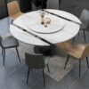 - Bàn có thể tuỳ biến từ bàn tròn thành chữ nhật giúp mở rộng diện tích sử dụng, chất liệu đá cẩm thạch trơn bóng gia công cho bàn dễ dàng vệ sinh lau chùi các vết bụi bẩn, thức ăn, có khả năng chống ẩm mốc tốt, chất liệu hoàn toàn thân thiện với sức khoẻ người sử dụng.