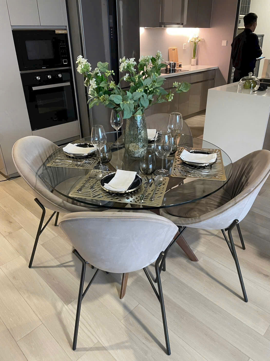 Bộ bàn ăn mặt kính tròn 4 ghế chân sắt là sự kết hợp hoàn hảo giữa phong cách hiện đại và tinh tế, mang đến điểm nhấn đẳng cấp cho không gian bếp hoặc phòng ăn của bạn. Thiết kế tối giản nhưng sang trọng, phù hợp với xu hướng nội thất mới nhất trong các căn hộ cao cấp, studio, nhà phố và chung cư hiện đại.