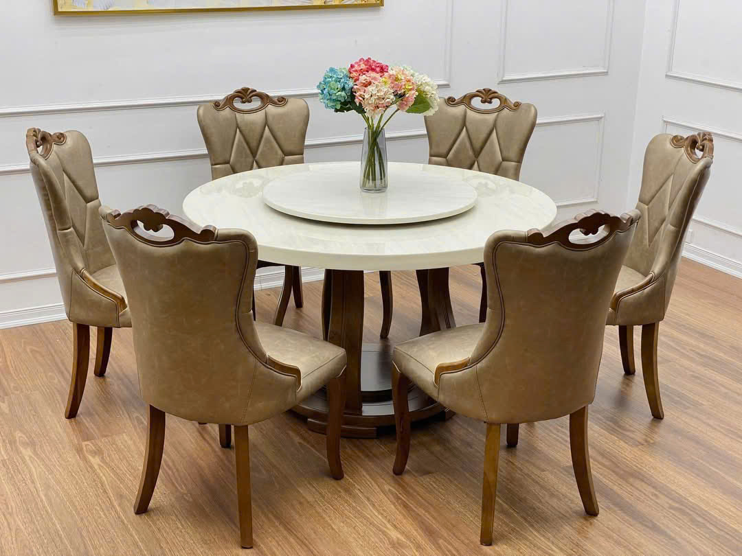 - Mặt bàn ăn hình tròn, thiết kế mân xoay tiện nghi