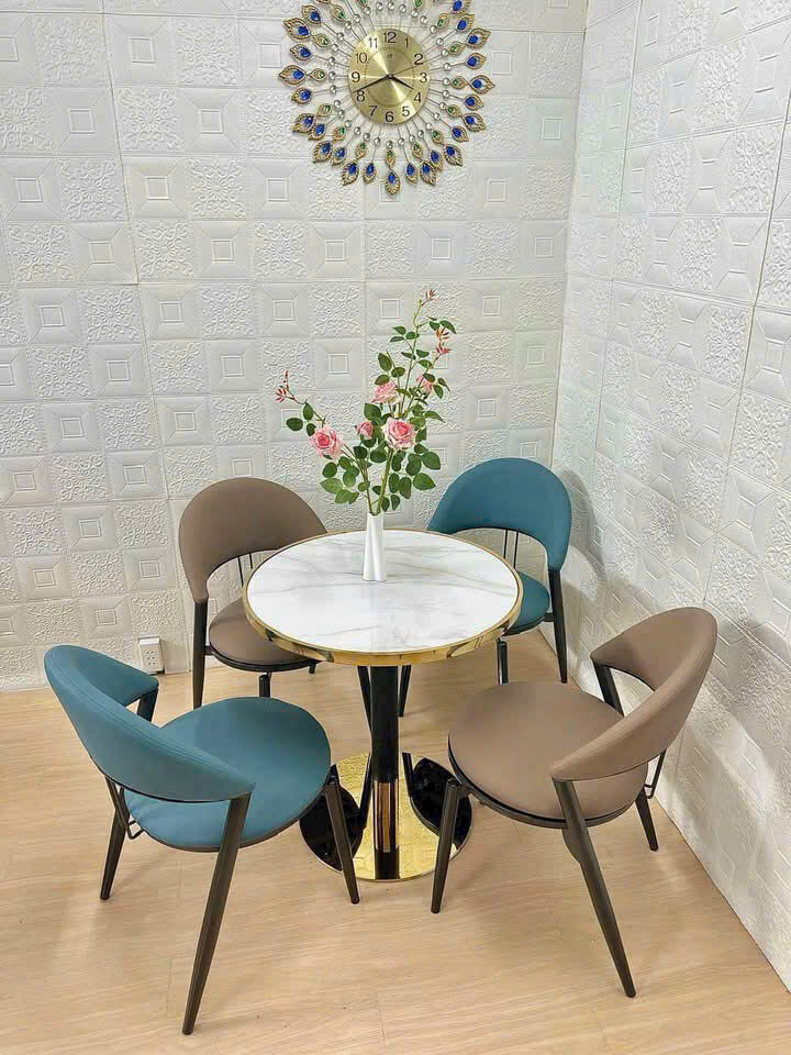 Bộ bàn ăn tròn mặt đá 4 ghế phối màu là lựa chọn lý tưởng cho những gia đình trẻ, căn hộ studio hoặc không gian bếp nhỏ. Với thiết kế tinh tế, hiện đại, phối màu thời trang giữa ghế xanh và nâu, cùng mặt bàn đá vân mây cao cấp – sản phẩm không chỉ tiện dụng mà còn mang lại điểm nhấn thẩm mỹ hoàn hảo cho không gian sống.