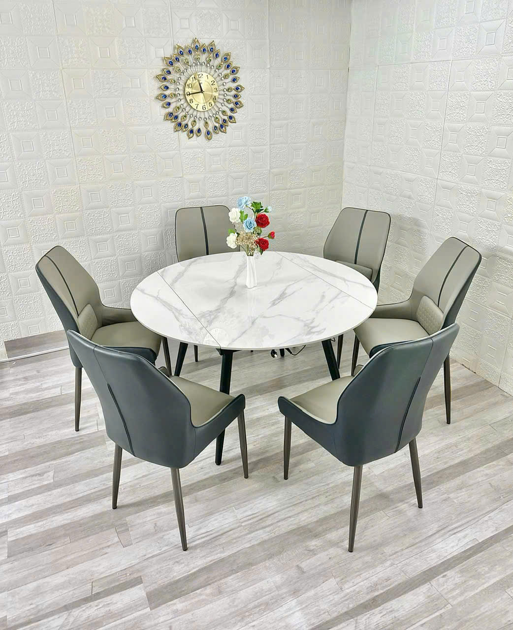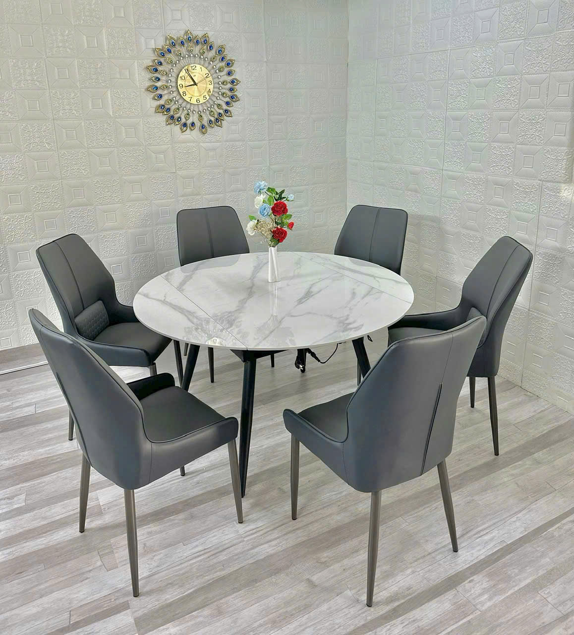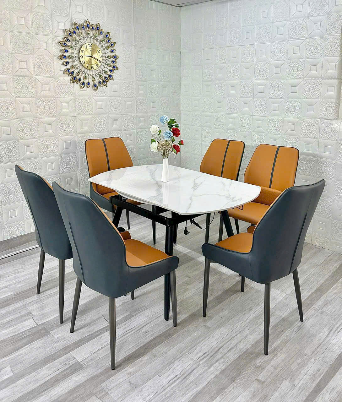 BỘ BÀN ĂN (GỒM 6 GHẾ ) XOAY TRÒN THÀNH CHỮ NHẬT CÓ BẾP TỪ MẶT ĐÁ CERAMIC CAO CẤP VN0431