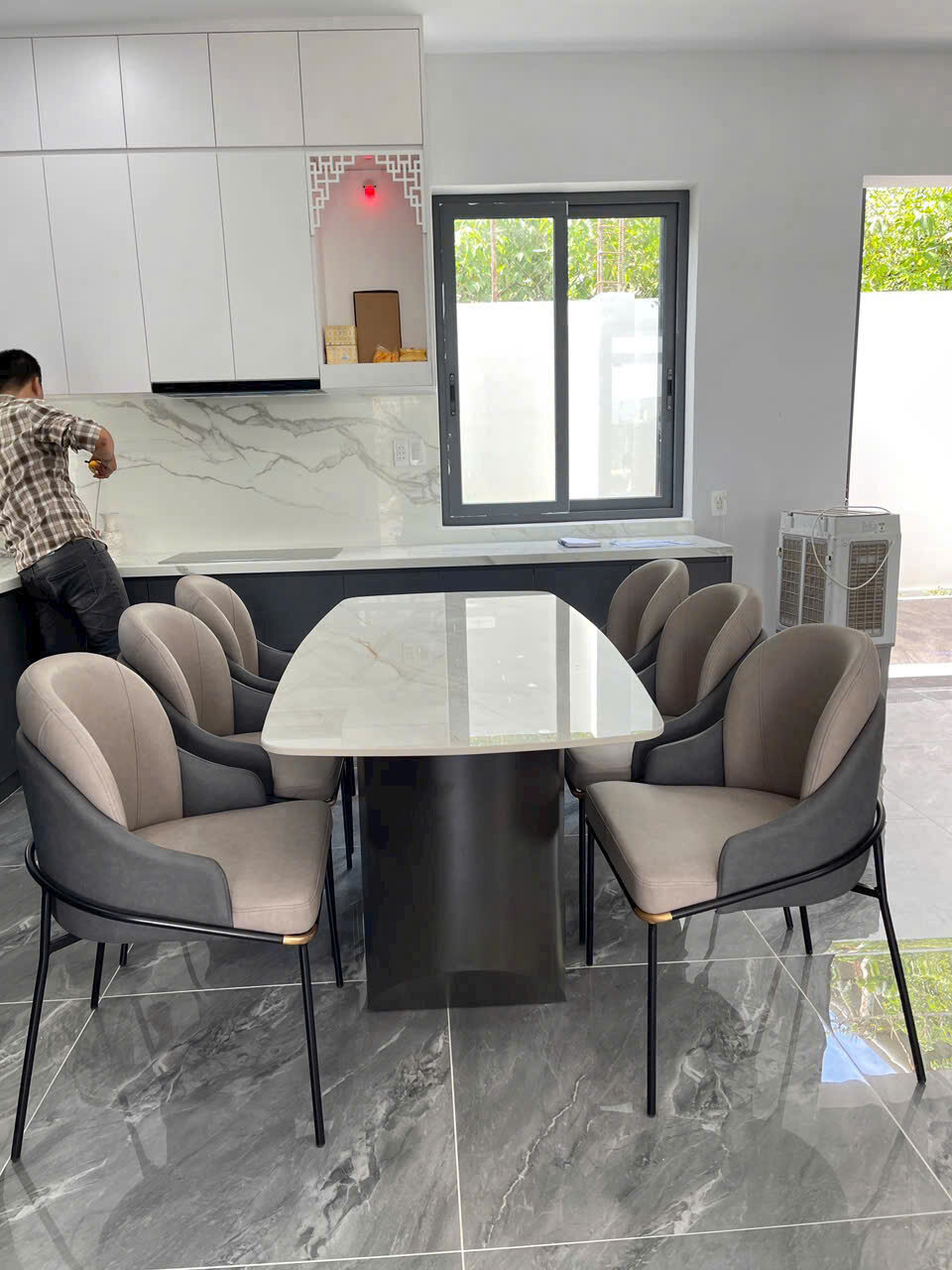 Chất liệu: Bàn ăn mặt đá phiến Ceramic, chân titan