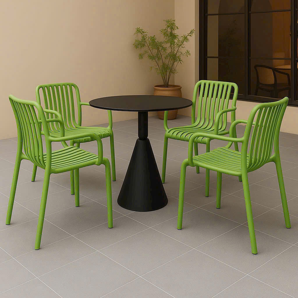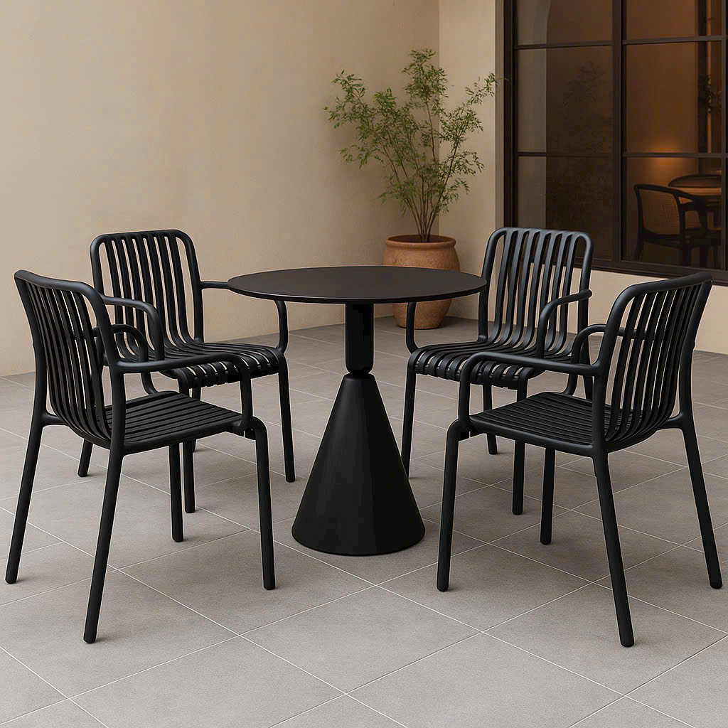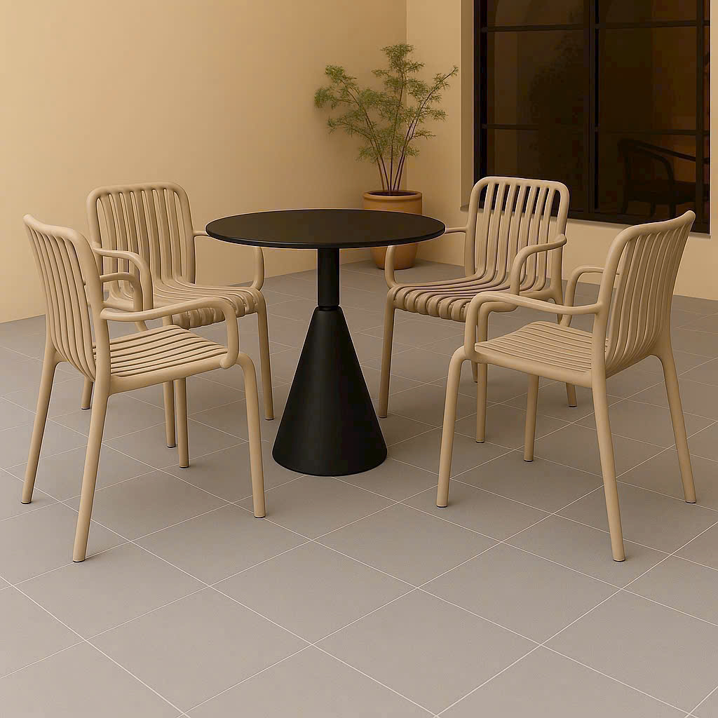 Bàn cafe mặt đá tròn PV-ST020 kết hợp 4 ghế sang trọng
