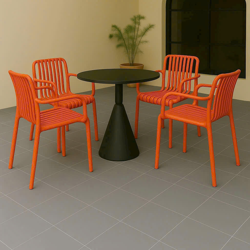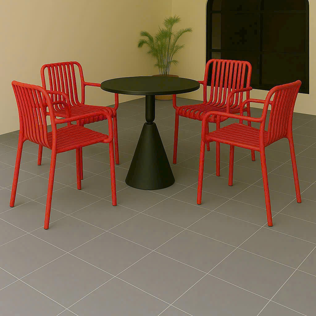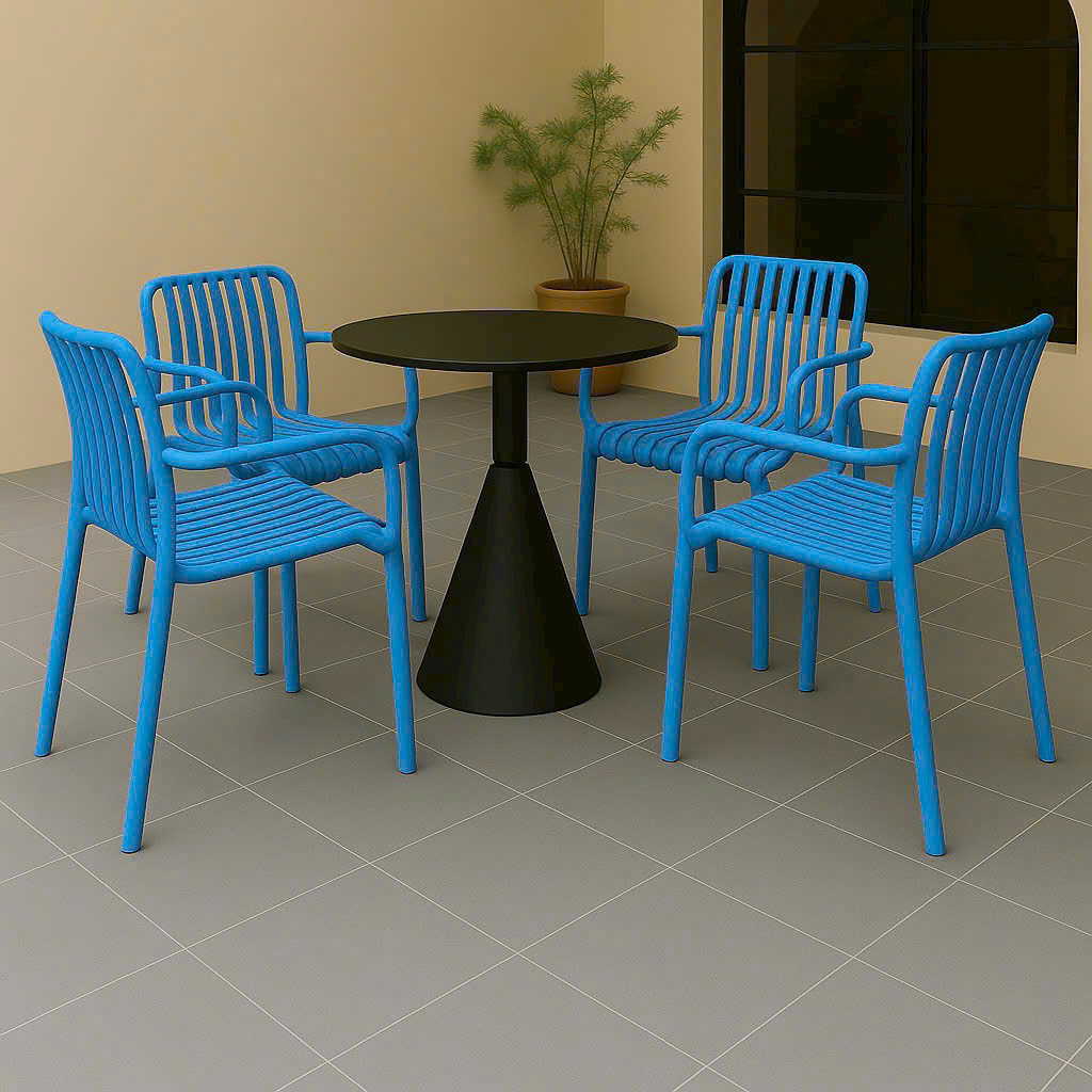 Bàn cafe mặt đá tròn PV-ST020 kết hợp 4 ghế sang trọng