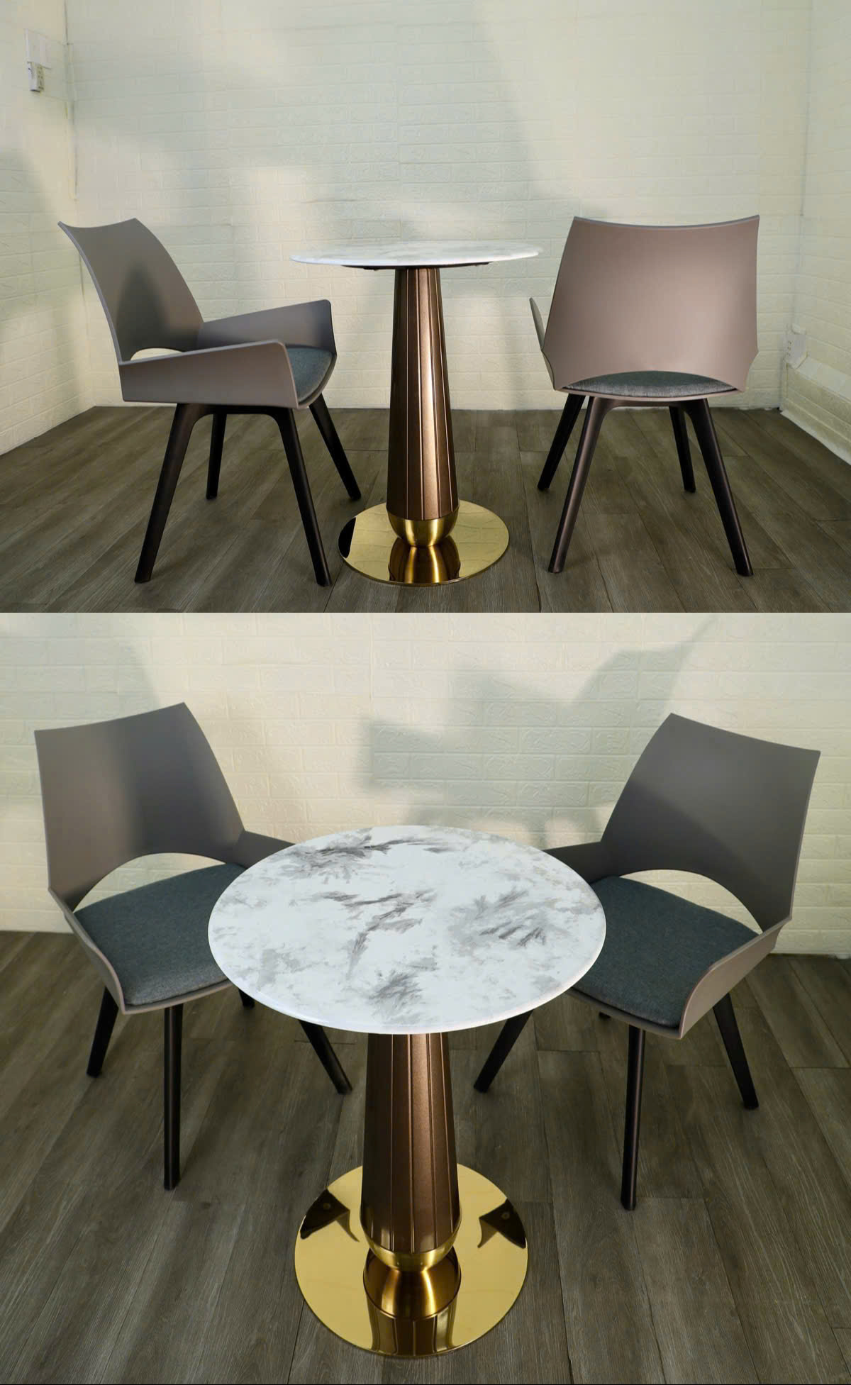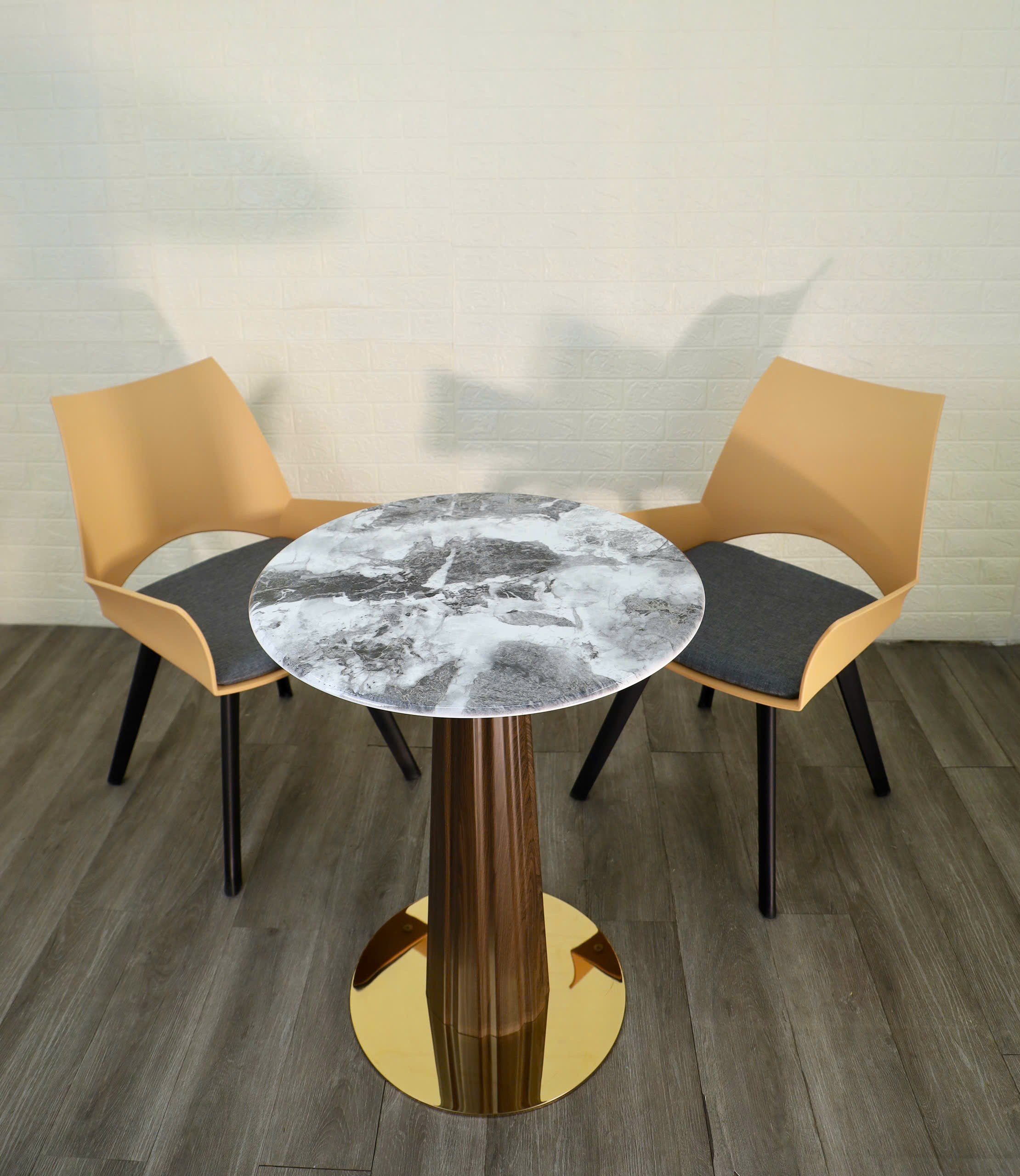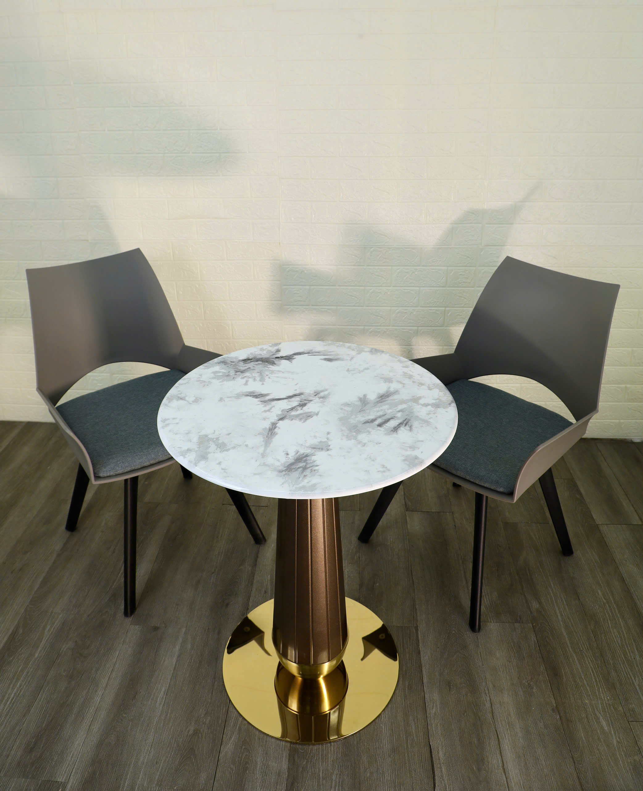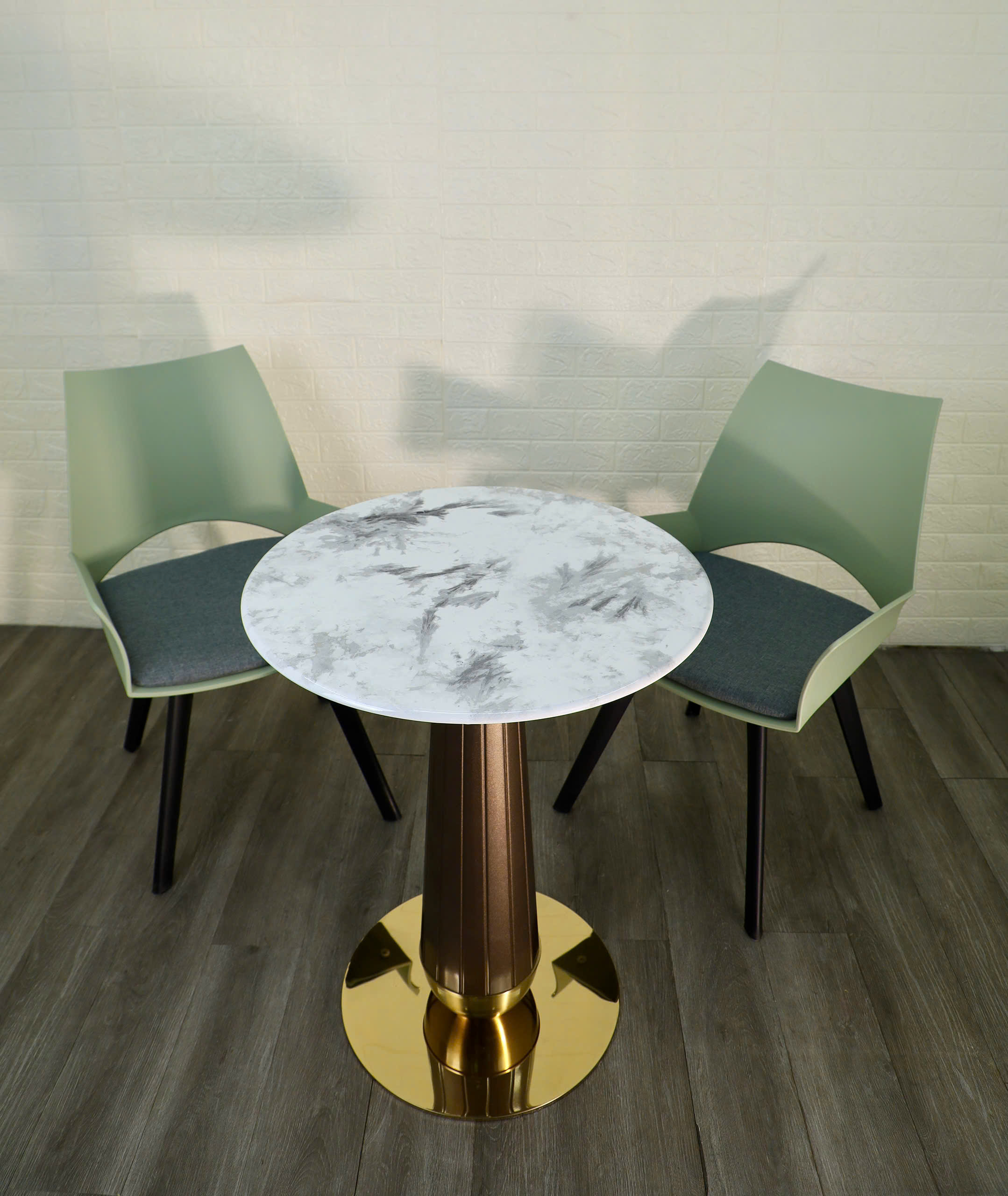 Chân đế tròn mạ vàng bóng gương, cực kỳ nổi bật và vững chắc.