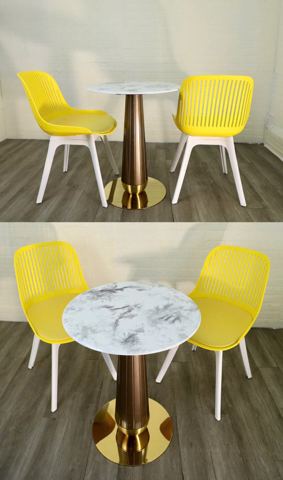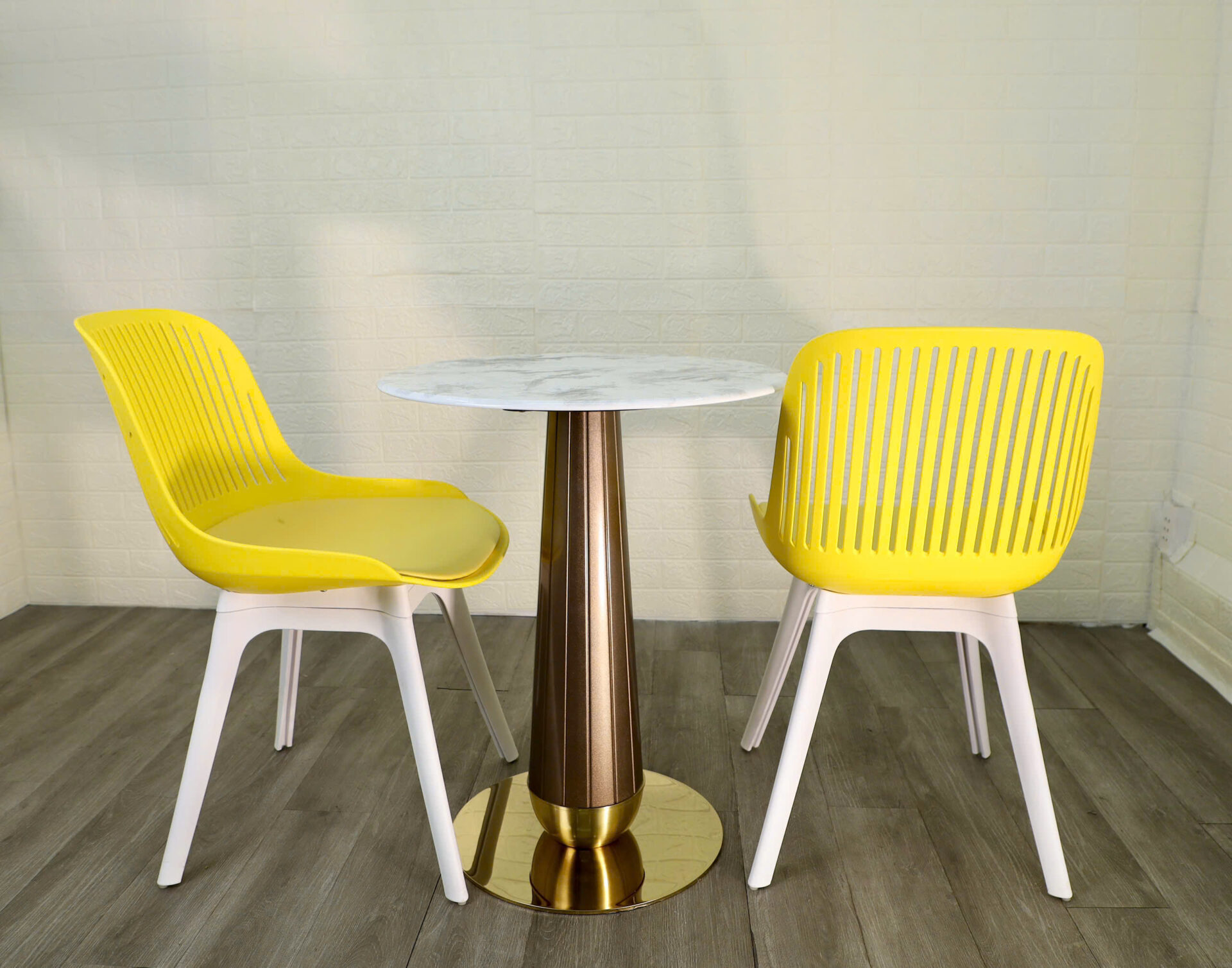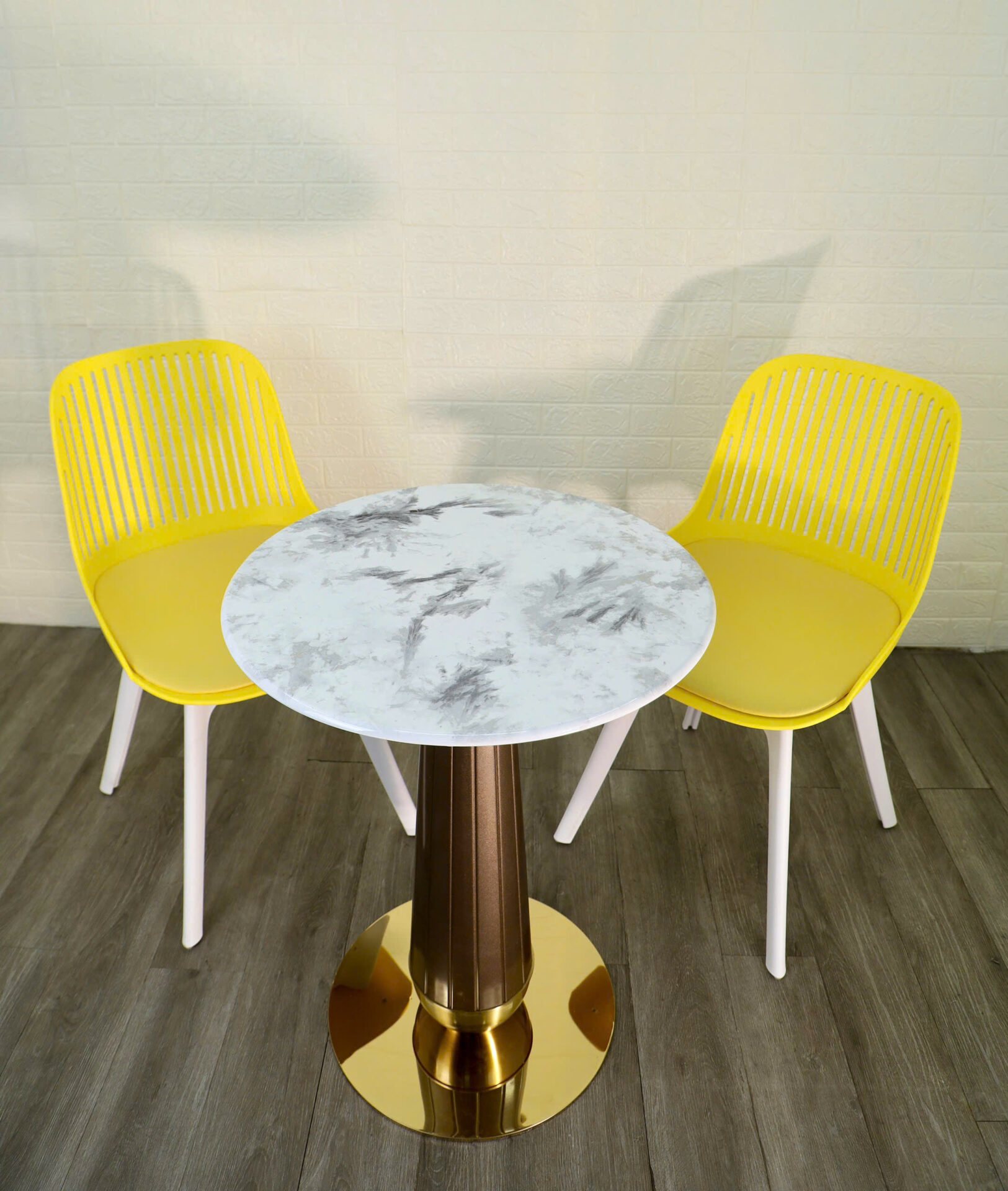 Chân đế tròn màu vàng bóng gương, tạo điểm nhấn nổi bật và chắc chắn.