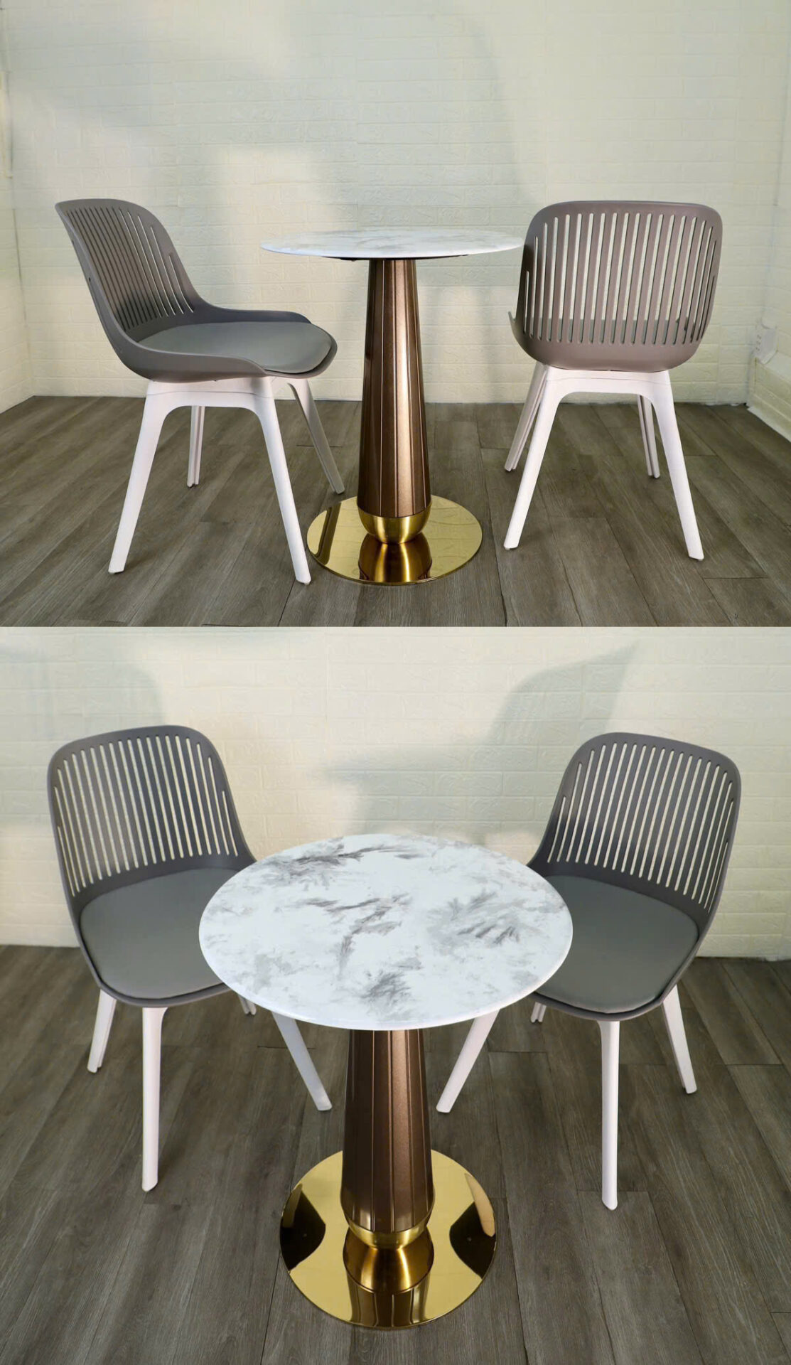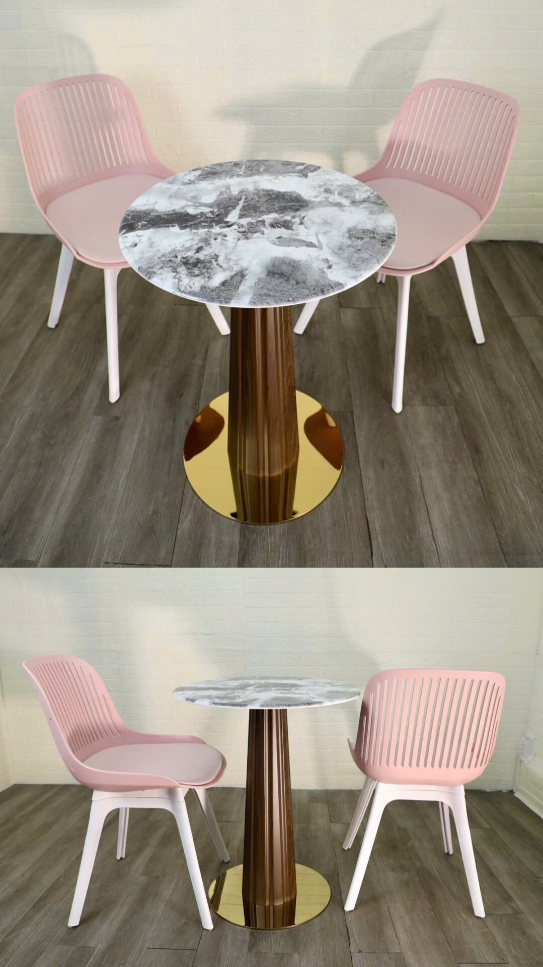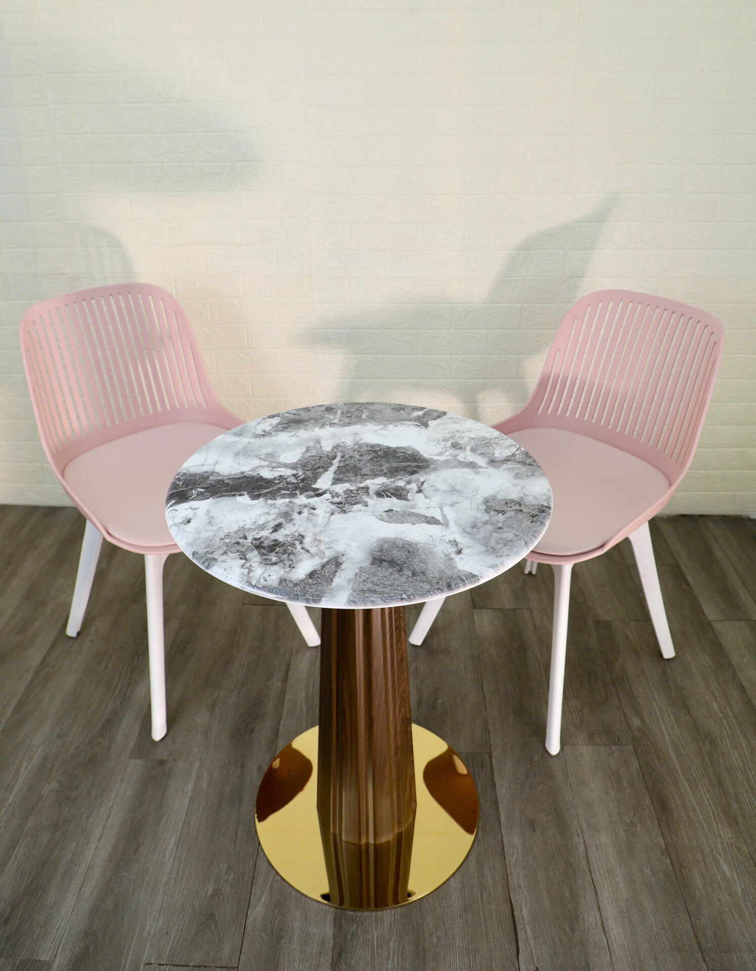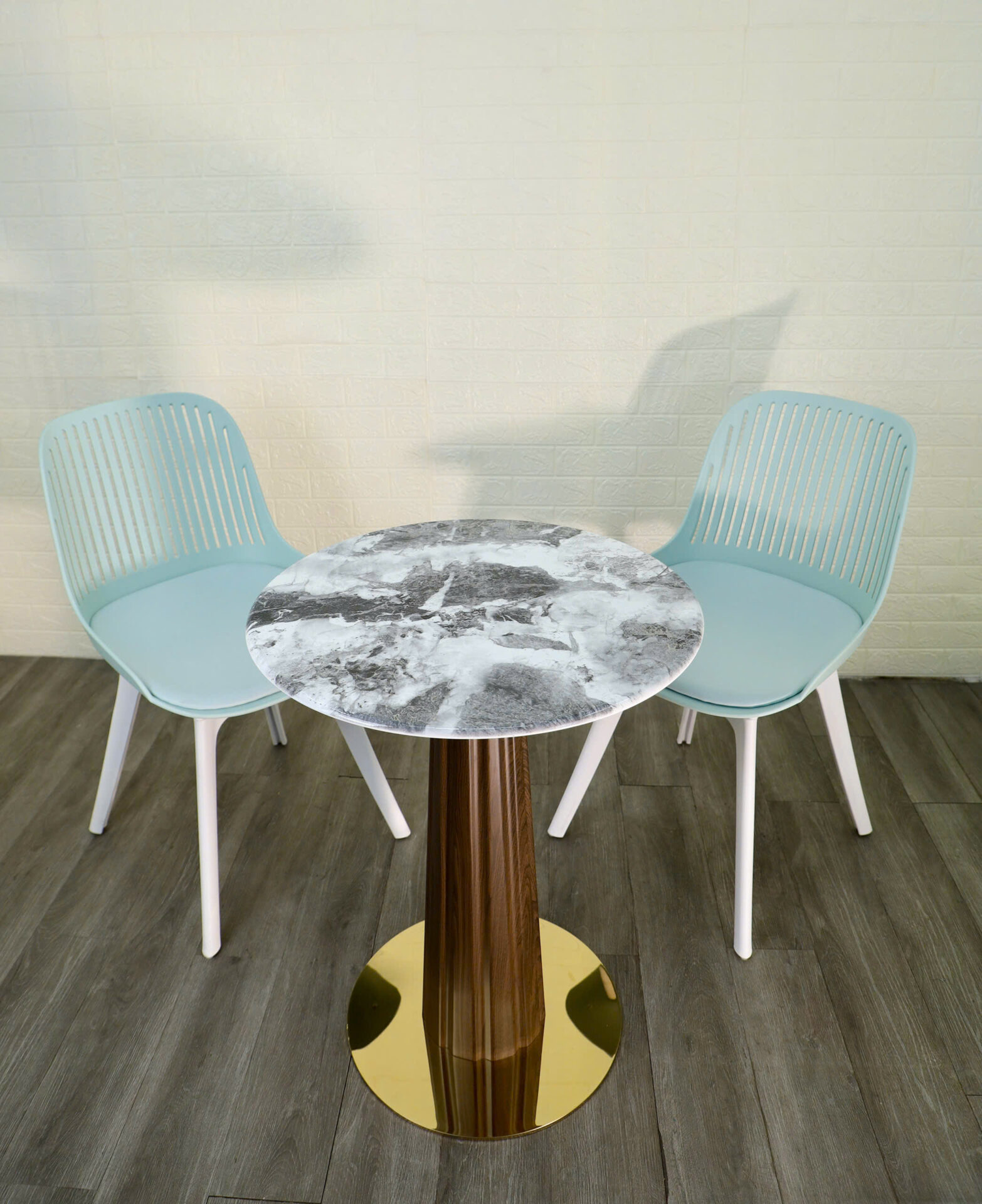 Chân đế tròn màu vàng bóng gương, tạo điểm nhấn nổi bật và chắc chắn.