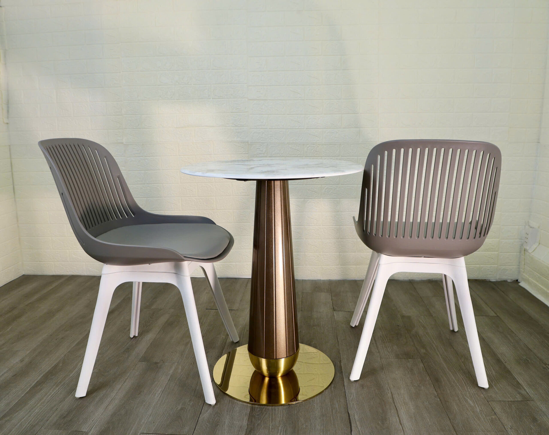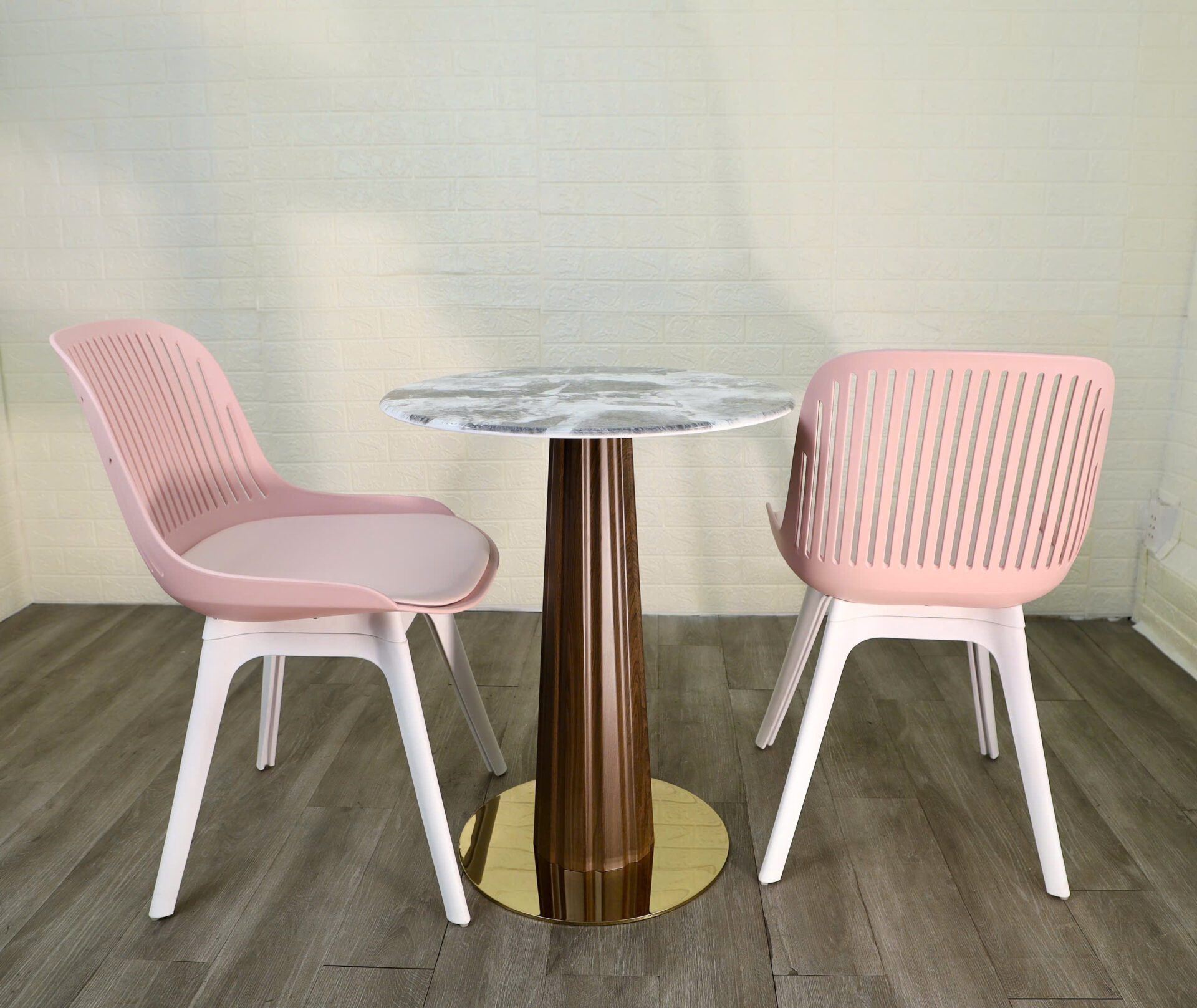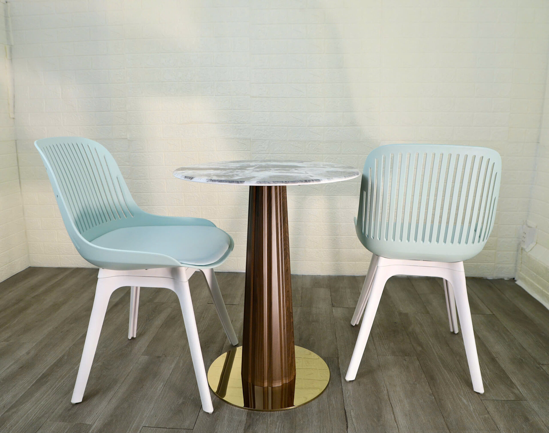 Chân ghế hơi vát ra ngoài, tăng độ ổn định.