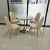 - Tên sản phẩm: Bàn mặt đá chân sắt/inox mạ vàng kèm 4 ghế Aurora sang trọng.