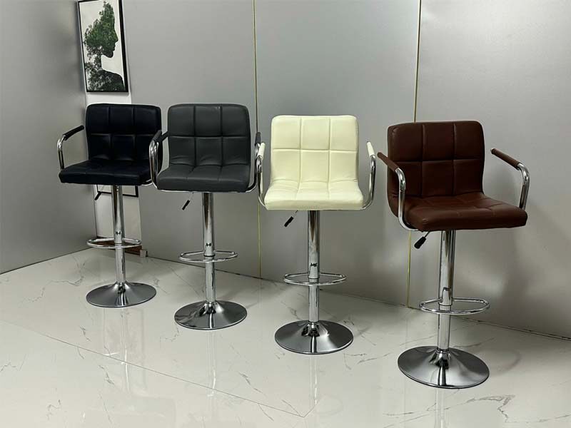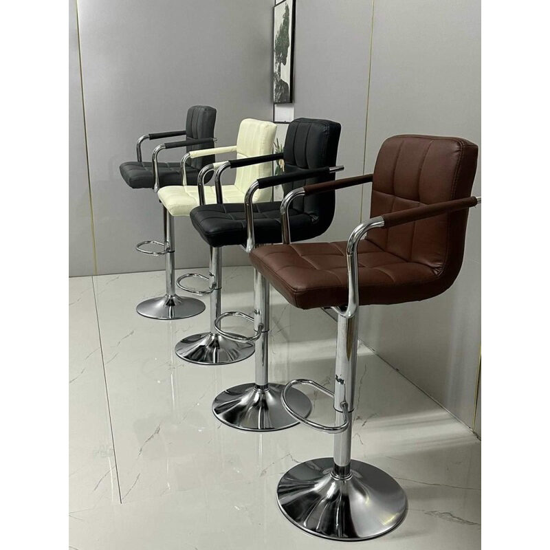 Ghế quầy bar bọc simili mút dày, may kiểu caro đẹp mắt, có lưng dựa