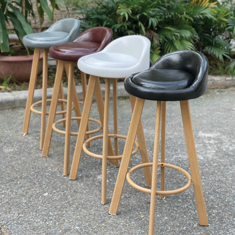 GHẾ BAR MẶT NỆM LƯNG TRUNG CHÂN SẮT VN-GB120VT đặc sắc với thiết kế 4 chân chắc chắn thép sơn vân giả gỗ, yên ghế có lưng tự mini bọc nệm PVC vô cùng thoải mái, thiết kế linh động có thể xoay 360 độ.