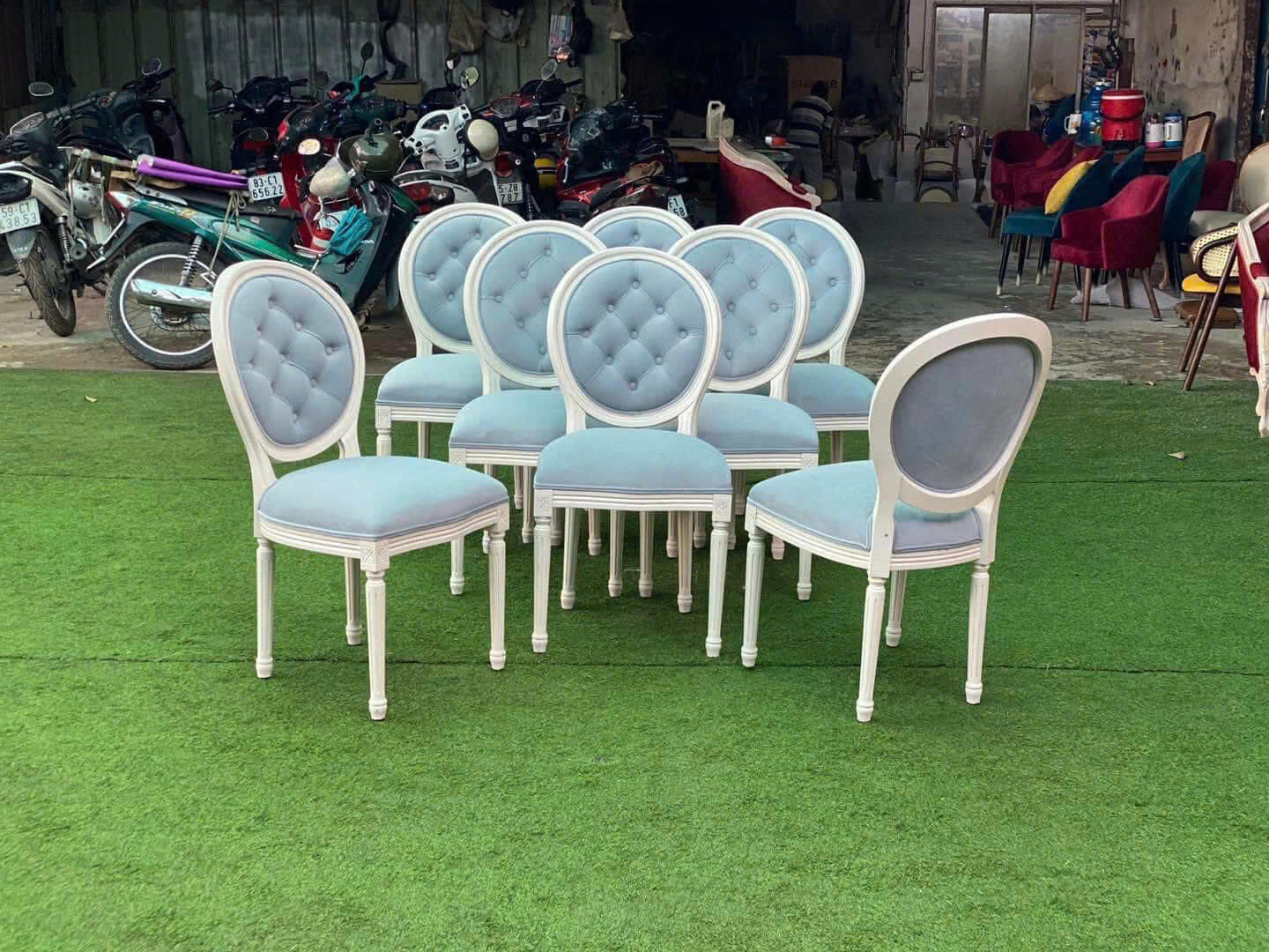 Ghế tân cổ điển bọc nhung cao cấp là sự kết hợp hoàn hảo giữa phong cách cổ điển hoàng gia và vẻ đẹp hiện đại tinh tế. Với phần khung ghế được làm từ gỗ tự nhiên sơn trắng, kết hợp cùng đệm ngồi và lưng ghế bọc nhung cao cấp màu xanh pastel, sản phẩm mang lại vẻ đẹp trang nhã, sang trọng, phù hợp với nhiều không gian như phòng khách, phòng ăn, sảnh cưới, nhà hàng, studio chụp ảnh…