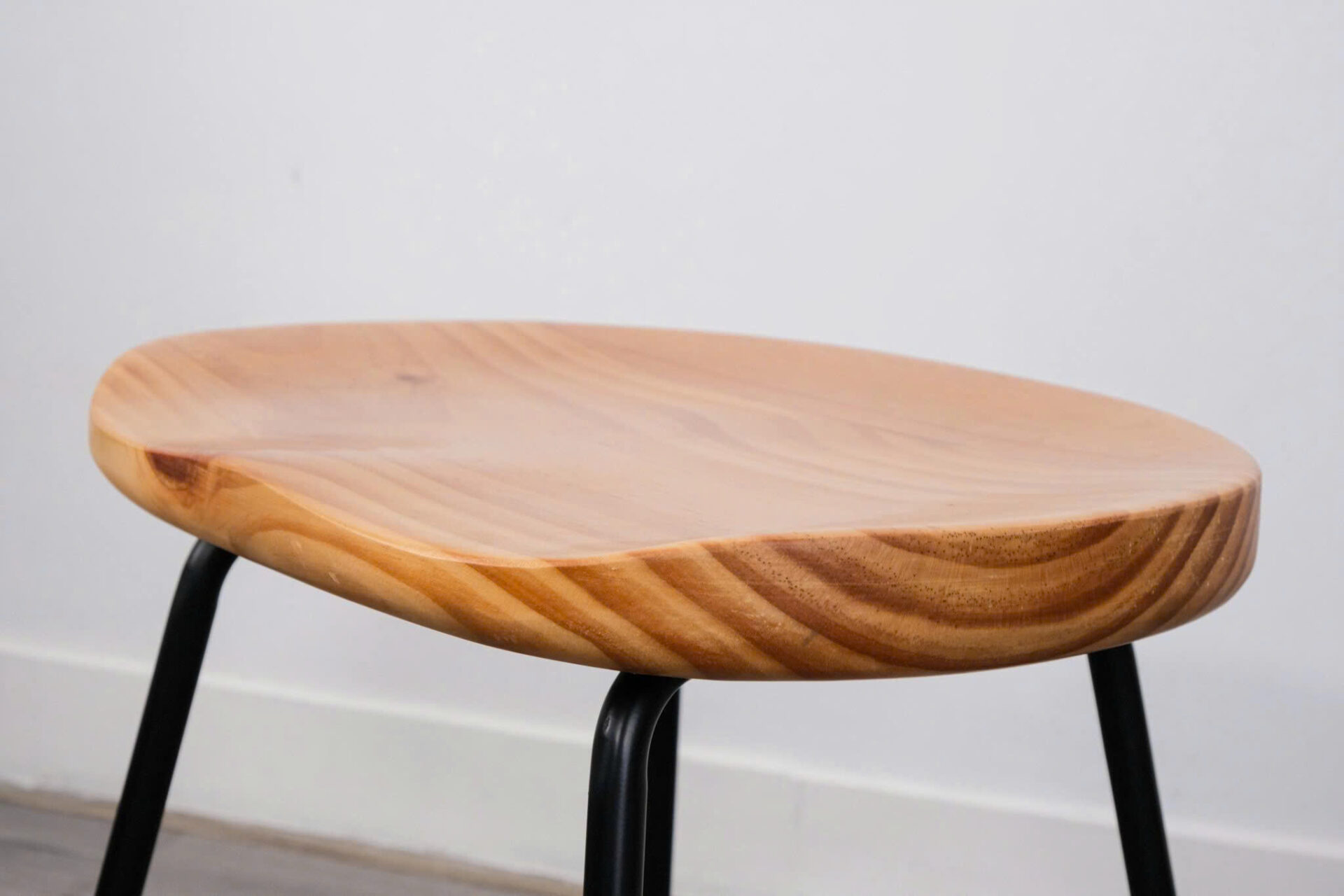 Mặt ghế gỗ thông tự nhiên: Chất liệu gỗ mộc mạc, bề mặt được xử lý nhẵn mịn, giữ lại vân gỗ tự nhiên đẹp mắt, mang đến cảm giác gần gũi và ấm cúng