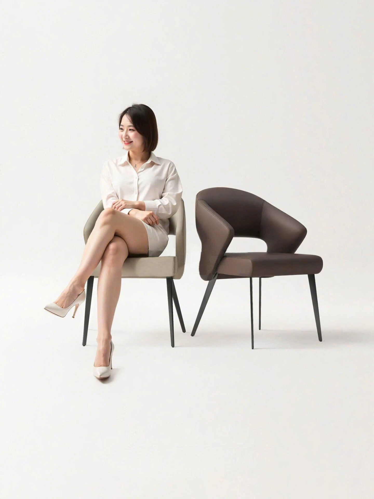 Chân ghế xiên nhẹ tạo cảm giác vững chắc nhưng vẫn thanh thoát.