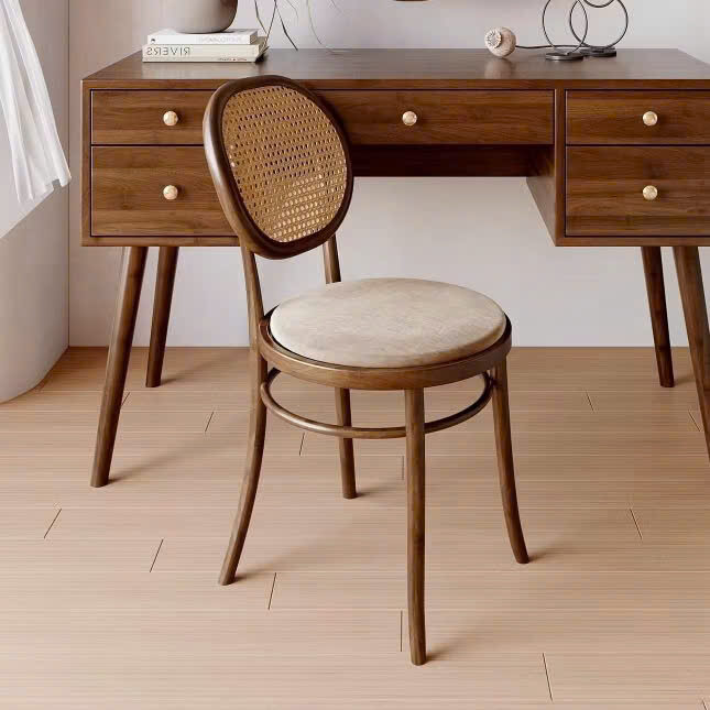 Ghế Gỗ Đan Mây Tròn Lưng Bọc Nệm – Sự Hòa Quyện Giữa Truyền Thống Và Hiện Đại