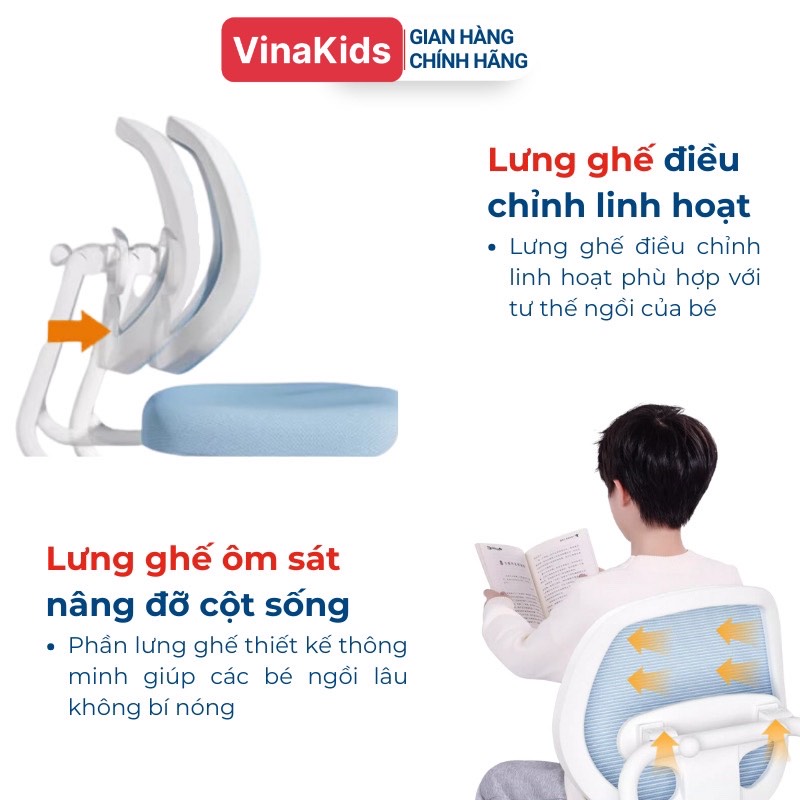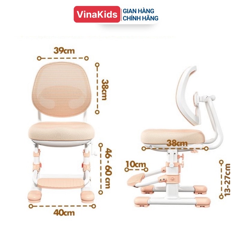 + Ghế có khả năng nâng hạ, điều chỉnh linh hoạt với từng cơ địa, từng thể trạng của mỗi bé, giúp cho bé ngồi đúng tư thế, mắt cách mặt bàn một khoảng đủ chuẩn, giúp ngăn ngừa cận thị