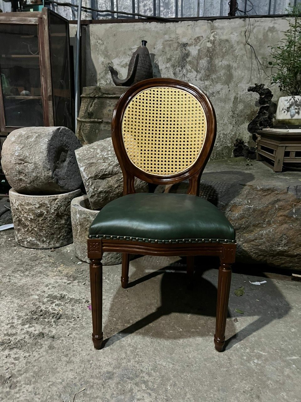 GHẾ LOUIS TÂN CỔ ĐIỂN – KHUNG GỖ ĐEN, LƯNG MÂY, NỆM XANH RÊU | SỰ KẾT HỢP TINH TẾ GIỮA CỔ ĐIỂN VÀ HIỆN ĐẠI