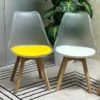 Chất liệu: Lưng nhựa PP trong nhám, mặt nệm ngồi bọc da PU, Chân gỗ Beech