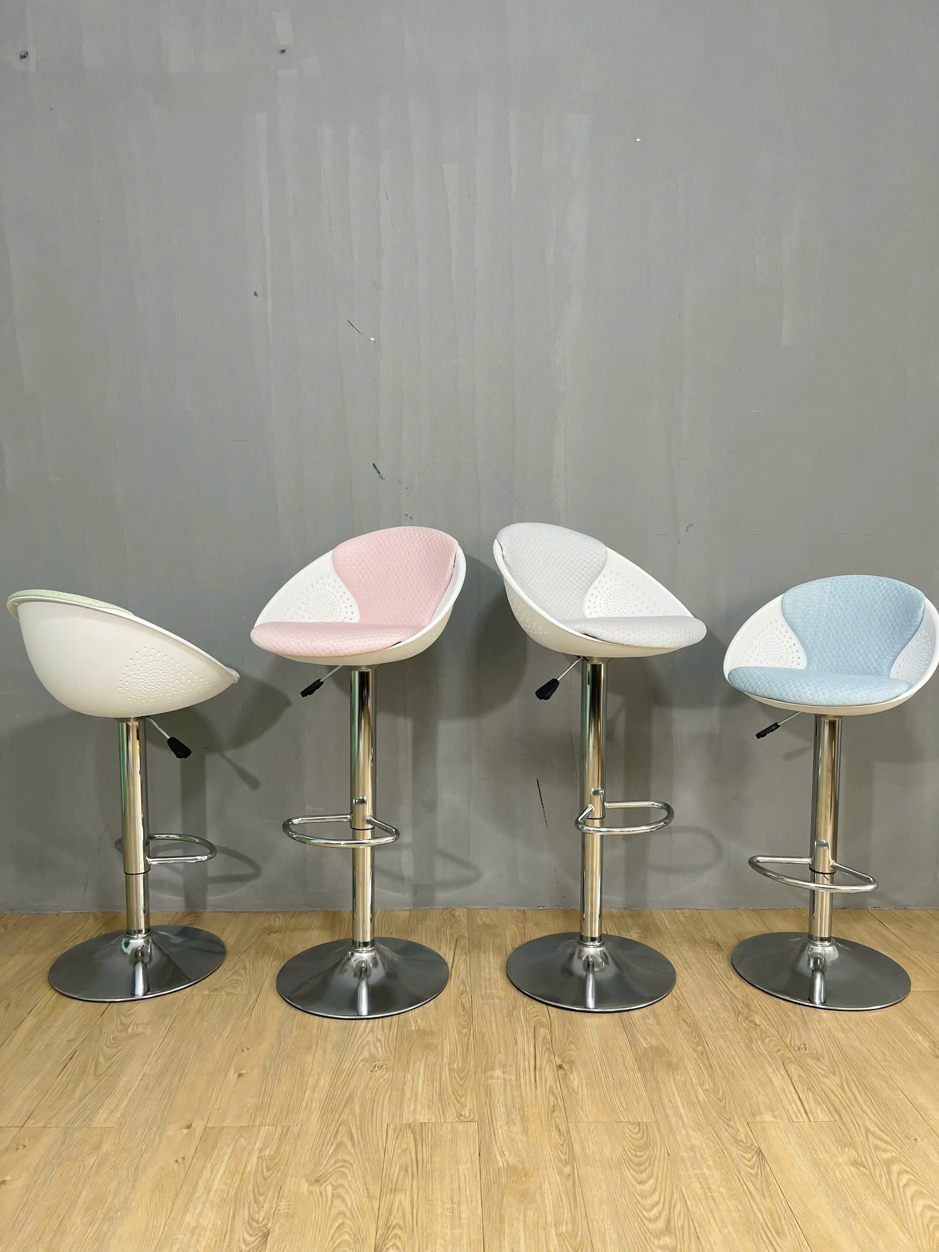 Chất liệu: Chân trụ xoay, lưng nhựa PP lót nệm vải