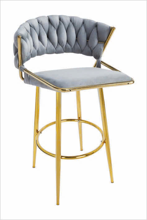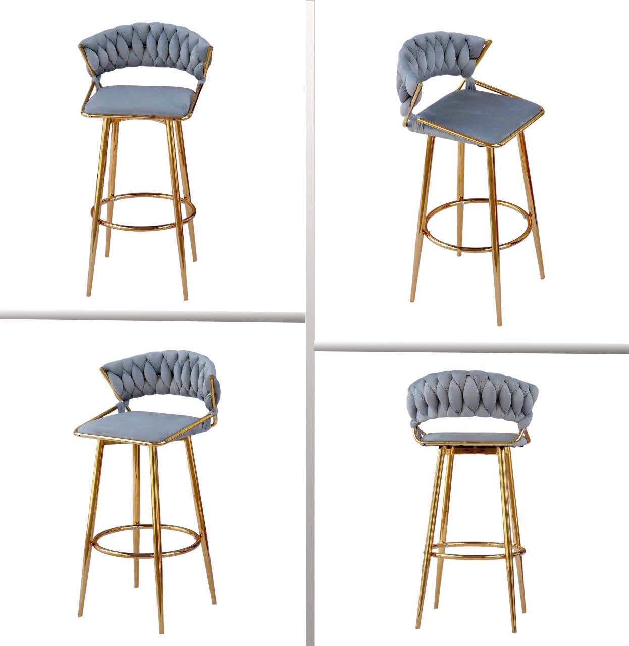 Chất liệu: Ghế quầy chân cố định bọc vải nhung , chân thép xi mạ vàng