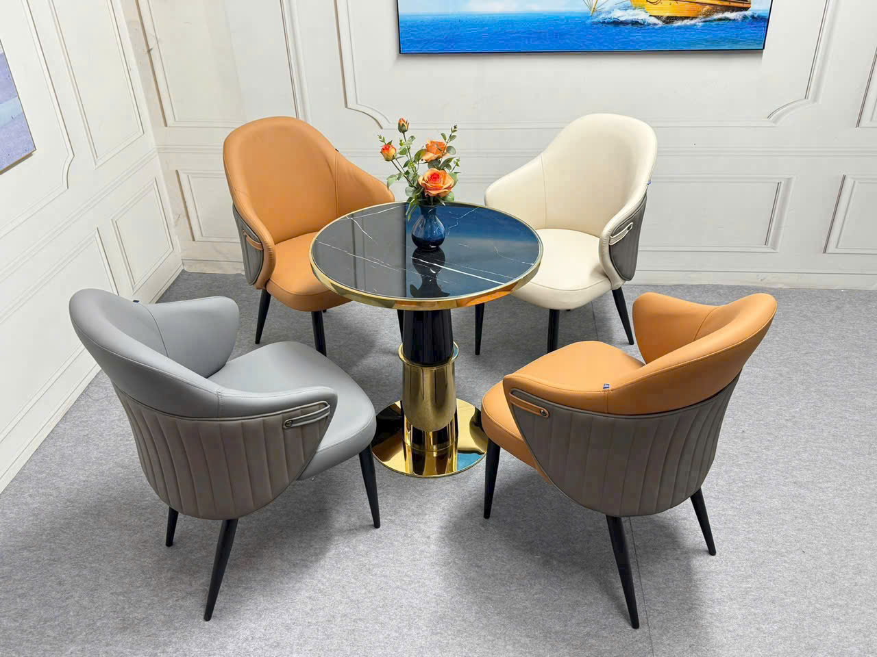 – Chất liệu: mặt bọc da công nghiệp cao cấp,chân sơn tĩnh điện