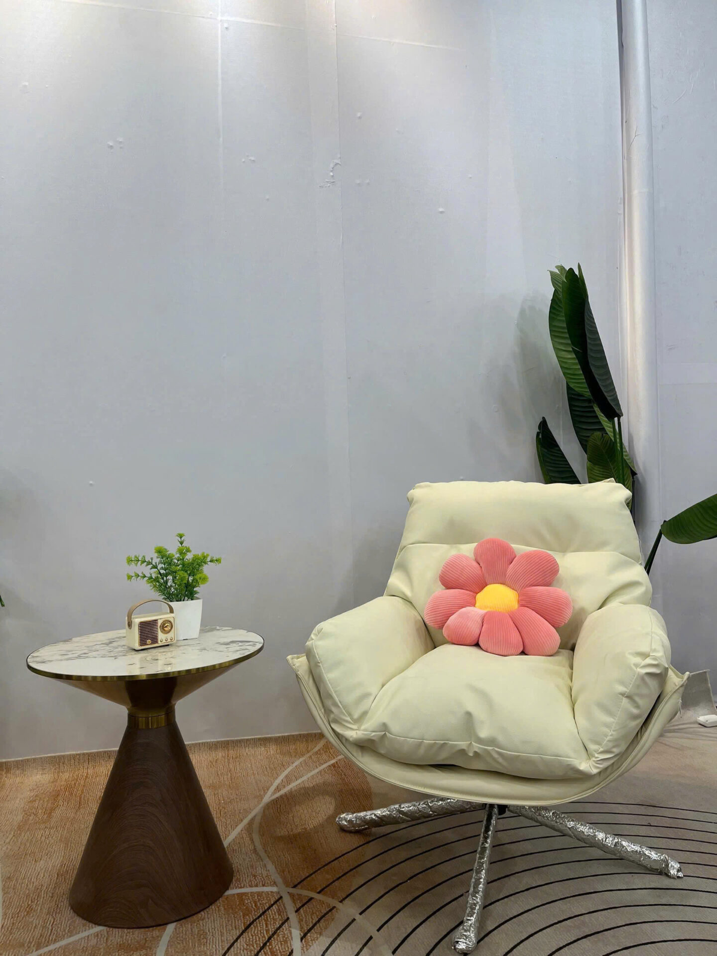 Ghế thư giãn hiện đại với thiết kế độc đáo, sang trọng, là lựa chọn hoàn hảo cho phòng khách, phòng ngủ hay không gian đọc sách. Sản phẩm được bọc nệm dày dặn, êm ái, đi kèm gối ôm hình hoa dễ thương, mang đến sự thoải mái tối đa cho người sử dụng.