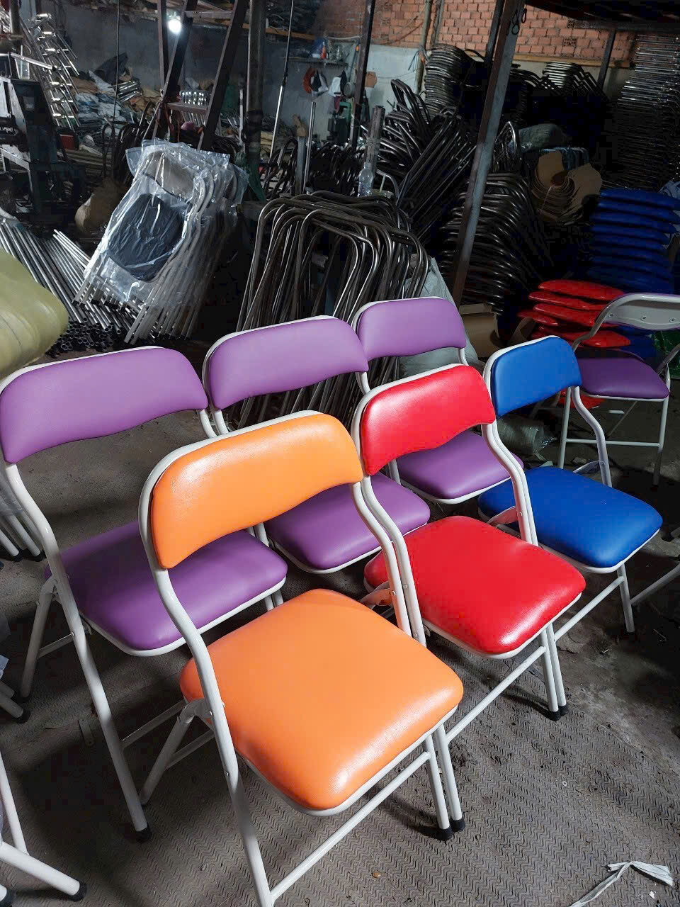 Sau đây nội thất Phong Vân xin giới thiệu ghế gấp sắt sơn tĩnh điện chất lượng cao. Ghế gấp có thiết kế dạng giống như ghế gấp sắt sơn tĩnh điện mặt nệm nhiều màu.