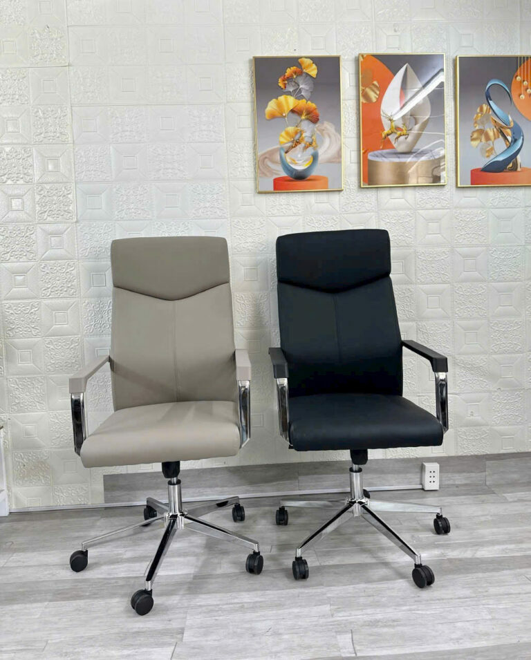 - Sang Trọng Và Đẳng Cấp: Với chất liệu da cao cấp và thiết kế mạ crom, ghế không chỉ đẹp mắt mà còn tạo nên sự chuyên nghiệp và đẳng cấp cho không gian làm việc của bạn.